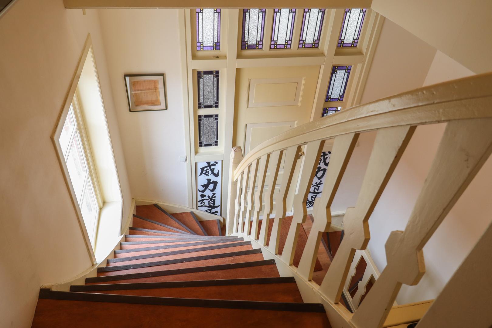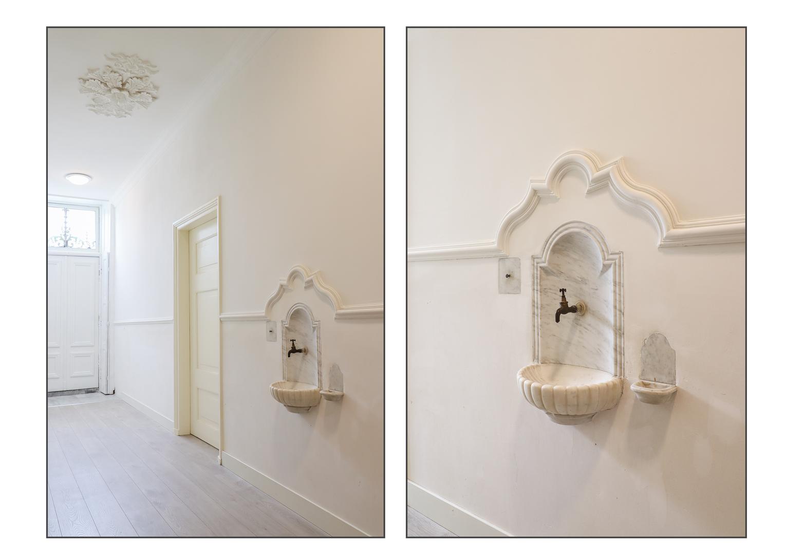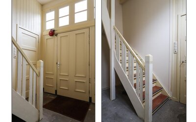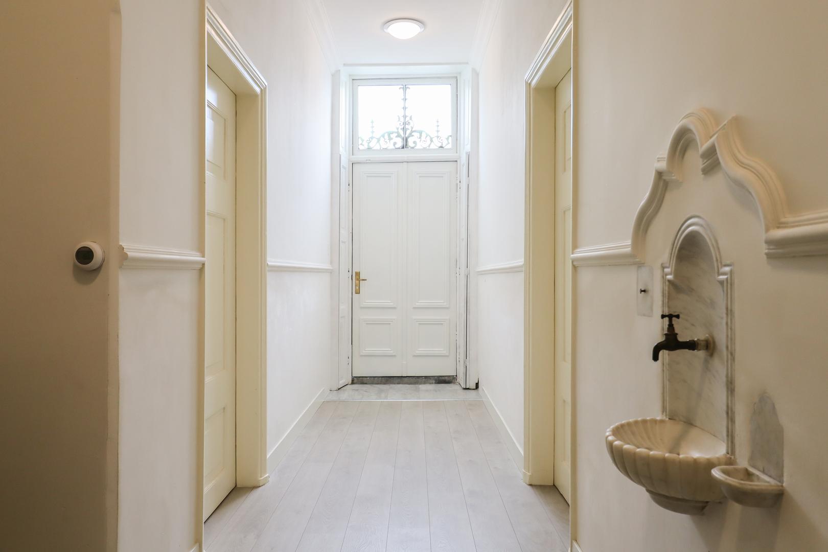 De entree aan Bonifatiusplein 1 is zonder meer indrukwekkend te noemen. De ruime hal wordt geflankeerd door twee fraai gerestaureerde kamers, geschikt als woonkamer, slaapvertrek, kantoor of hobbyruimte. In één van deze kamers is bovendien een douche- gelegenheid gerealiseerd, wat extra flexibiliteit biedt in gebruik.