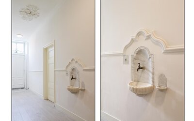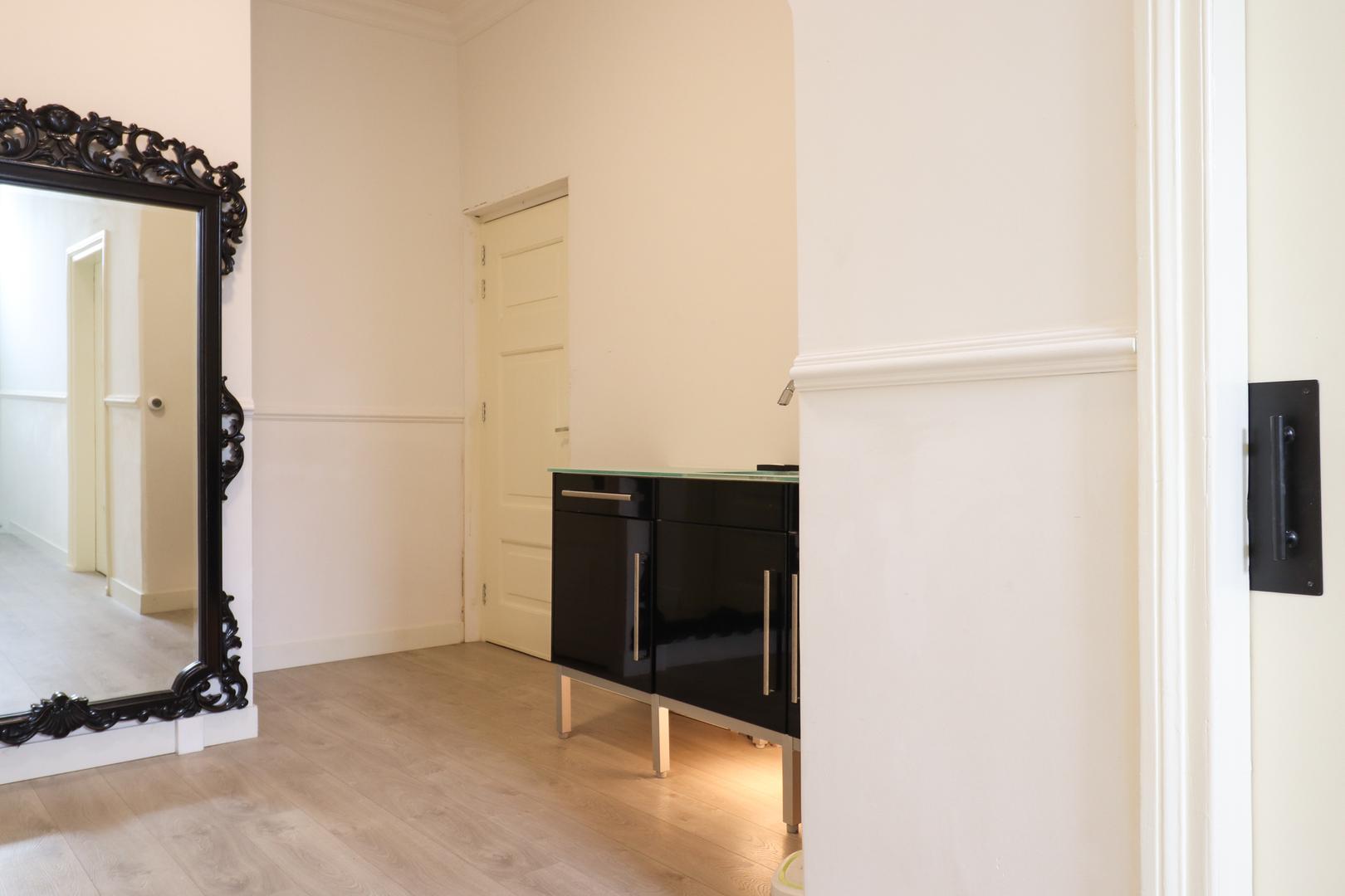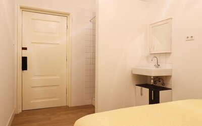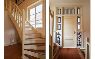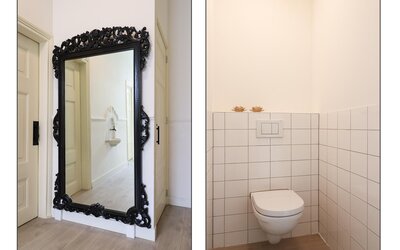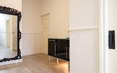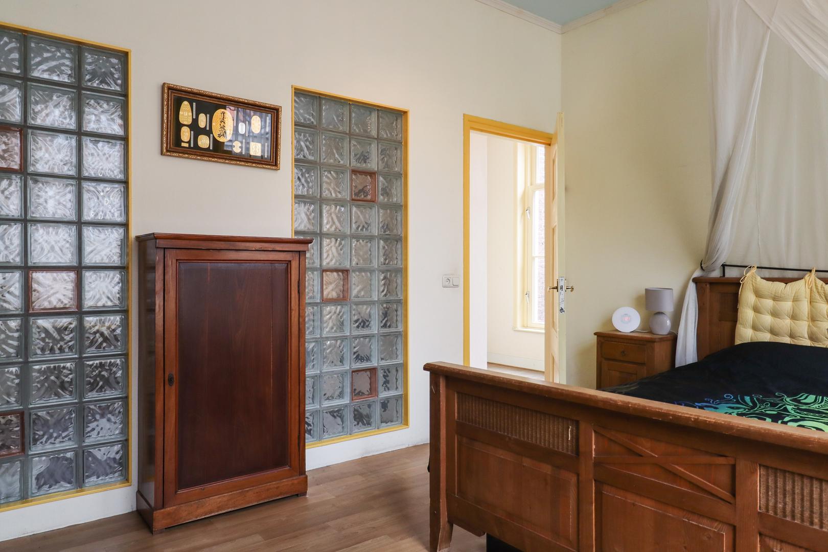 De entree aan Bonifatiusplein 1 is zonder meer indrukwekkend te noemen. De ruime hal wordt geflankeerd door twee fraai gerestaureerde kamers, geschikt als woonkamer, slaapvertrek, kantoor of hobbyruimte. In één van deze kamers is bovendien een douche- gelegenheid gerealiseerd, wat extra flexibiliteit biedt in gebruik.