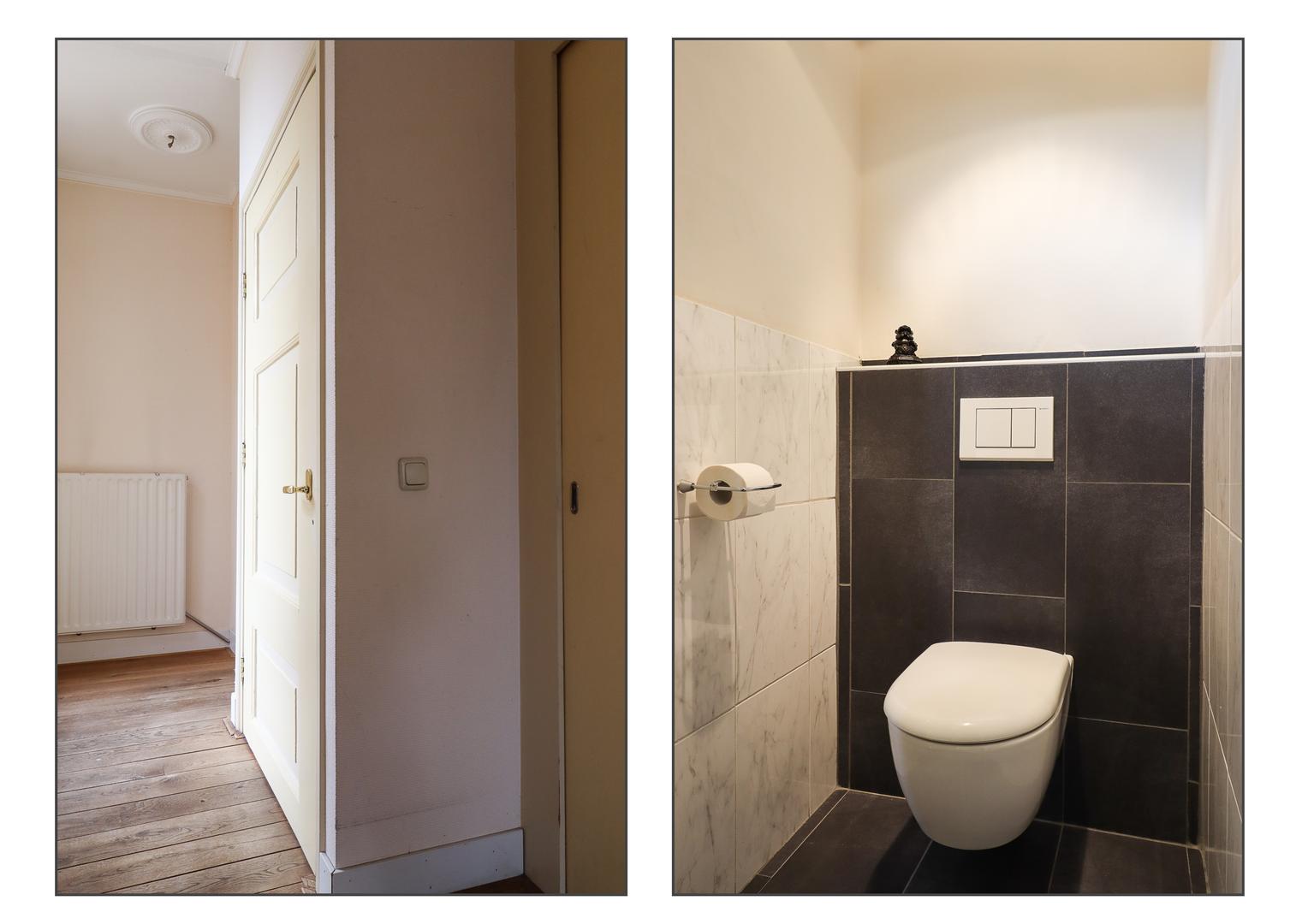 Achter in de hal bevinden zich het toilet en de toegang tot het bovengelegen woondeel (Bonifatiusplein 2), dat tevens beschikt over een eigen ingang aan de noordzijde, via de toegangsstraat naar de kerk.