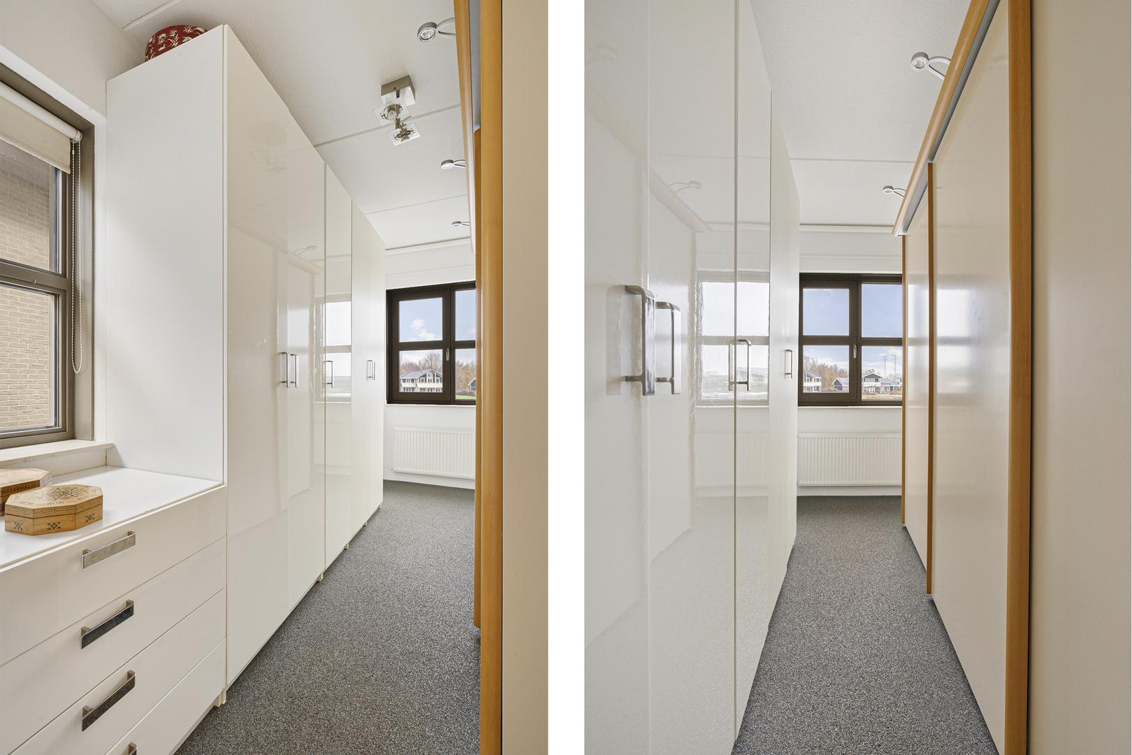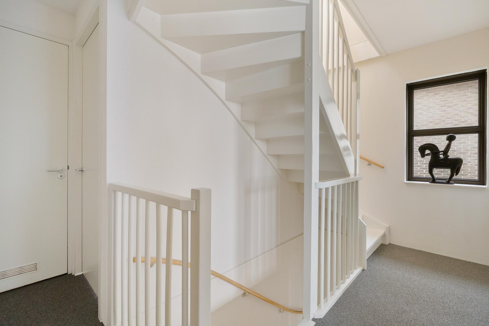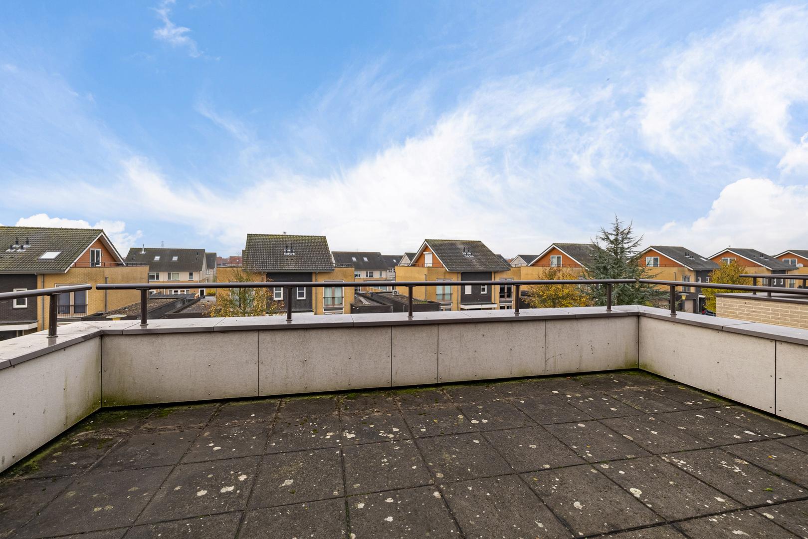 De tweede verdieping biedt een bijzonder ruime vierde slaapkamer met hoge nok en een fijne lichtinval. Daarnaast is er een aparte berging met wasruimte. Vanaf de overloop stap je het royale dakterras op, een heerlijke plek om in alle rust van de zon te genieten.