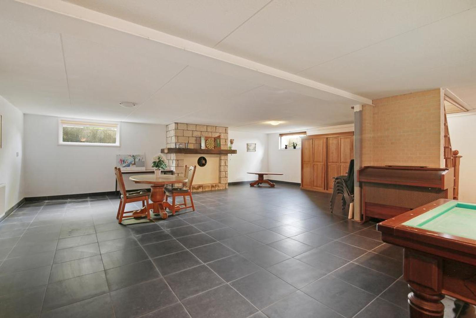 Ruime recreatie-/hobbyruimte (ca. 7,80 x 4,90 m), bereikbaar vanuit de hal. Het souterrain loopt over het gehele oppervlak van de woning ca 8.50 x 14.50