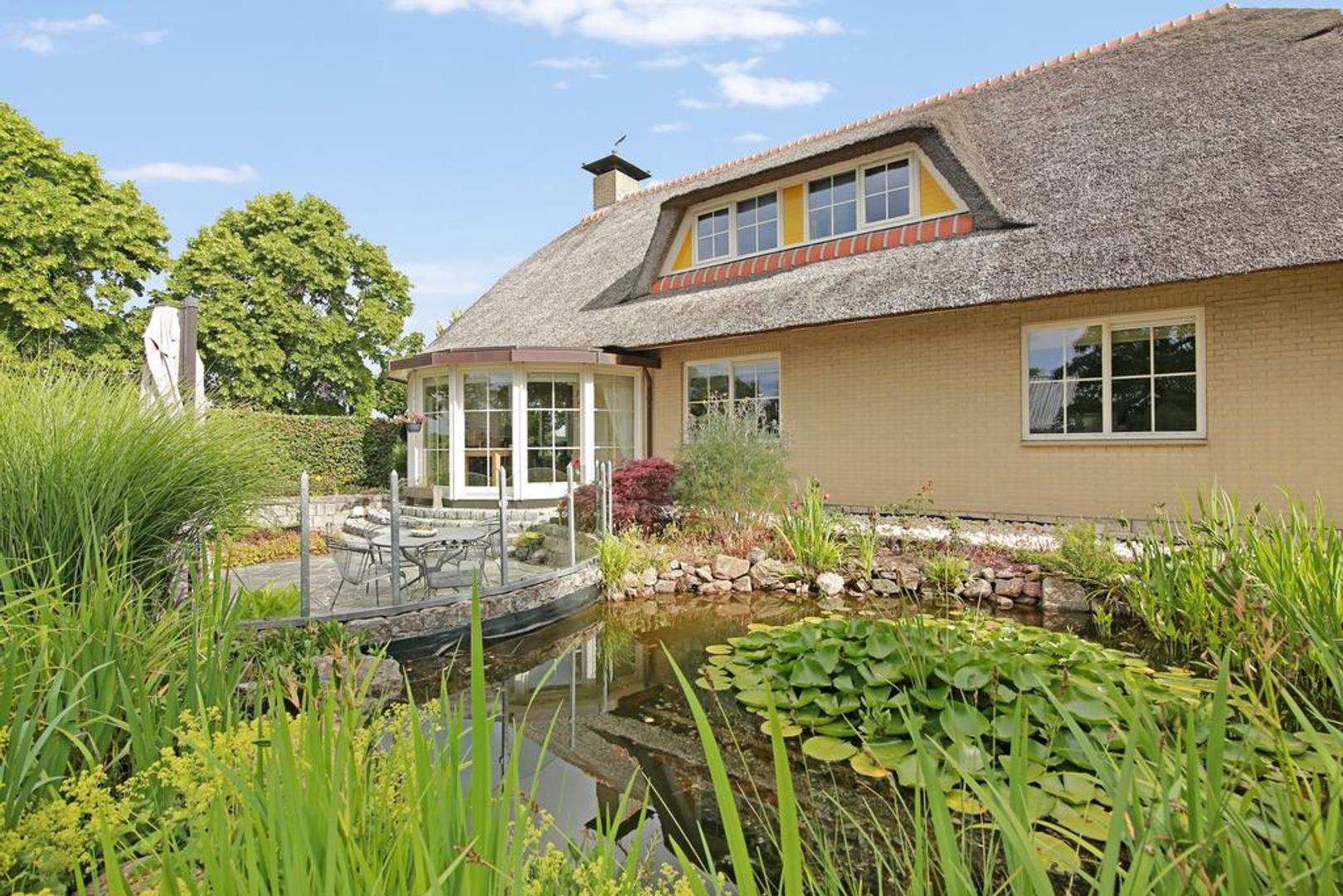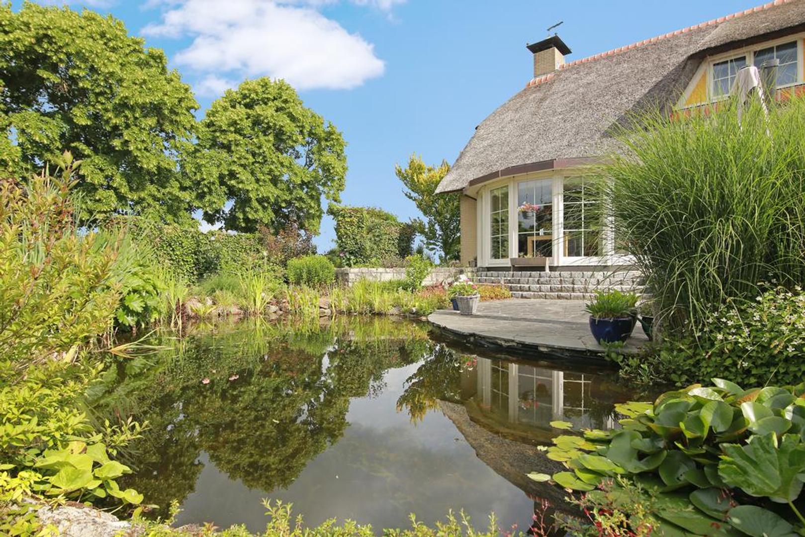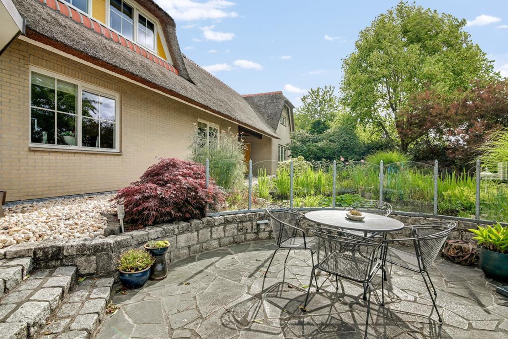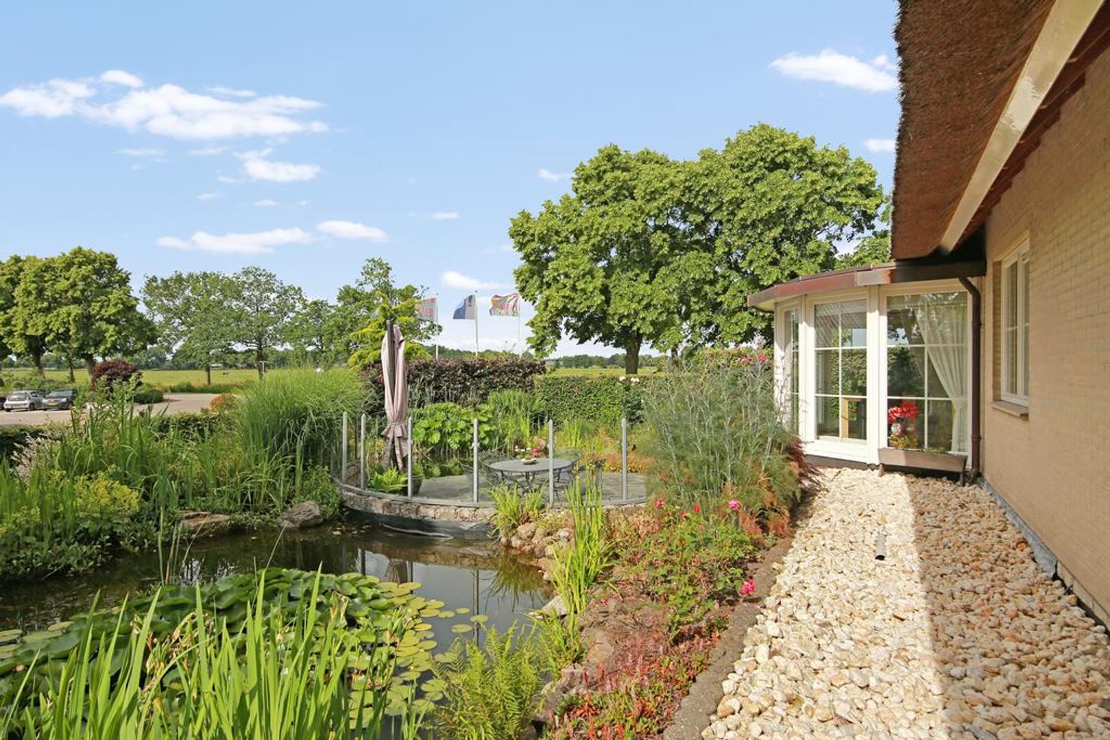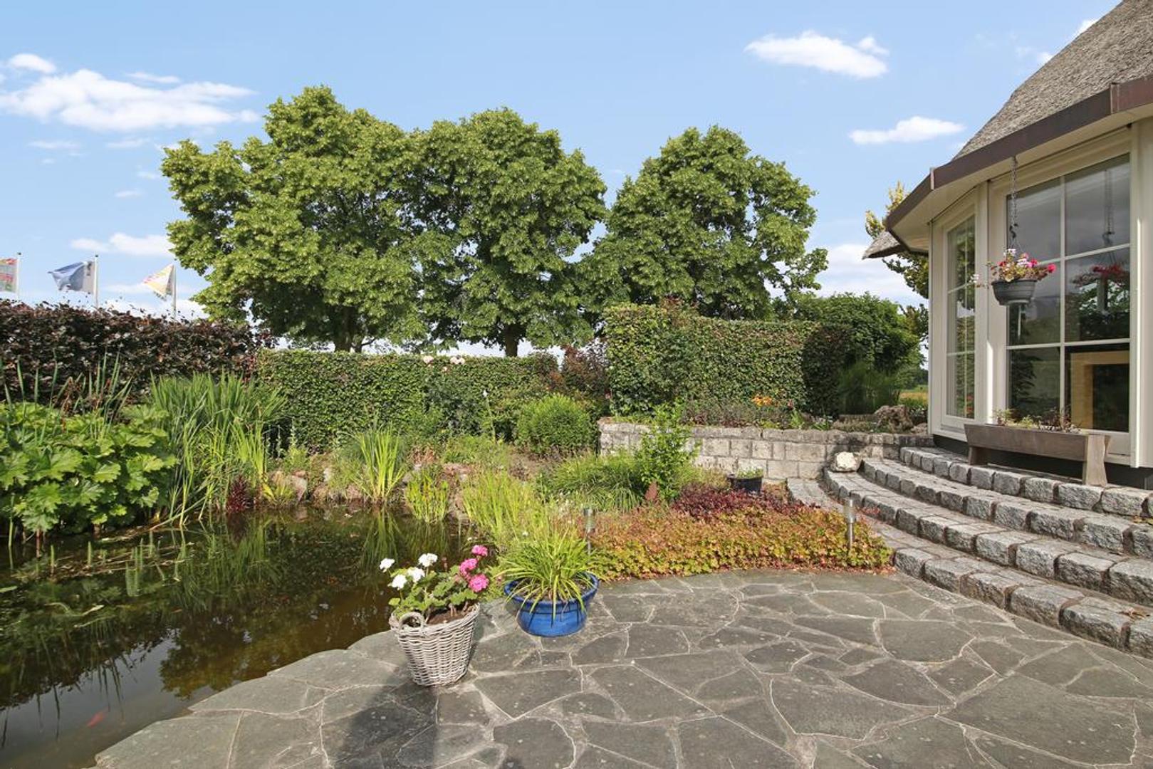 De woning beschikt over meerdere zongelegen terrassen en een royale, verzorgde tuin met vijverpartij. Op het erf is ruim voldoende parkeergelegenheid.
