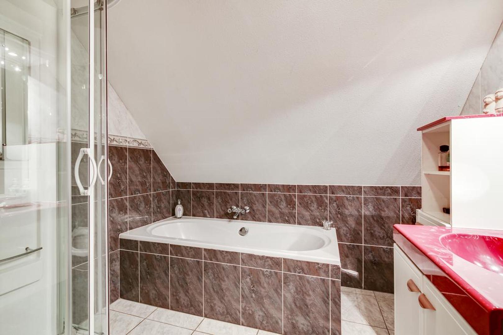 • Badkamer voorzien van ligbad met bubbels en douche