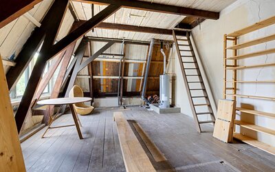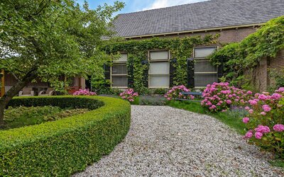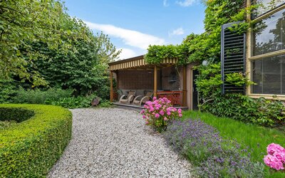 De zolder en vlieringen bieden veel bergruimte, deels met stahoogte. De bijgebouwen en overkapping in de tuin zorgen voor nog meer mogelijkheden, van buitenkeuken tot atelier.