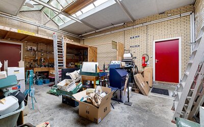 Twee bijgebouwen, o.a. voormalig gymlokaal en twee aangesloten bergingen