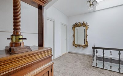 Op de eerste verdieping vind je drie slaapkamers, waaronder een indrukwekkende van 65,5 m² en een tweede van bijna 30 m². De riante badkamer (16,4 m²) is voorzien van dubbele wastafels. De tweede verdieping telt nog eens vier slaapkamers, extra wastafels en een compacte badkamer.