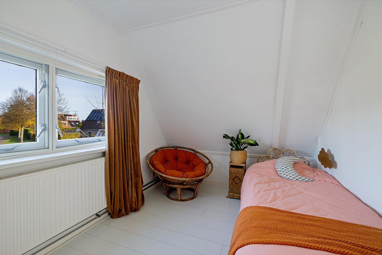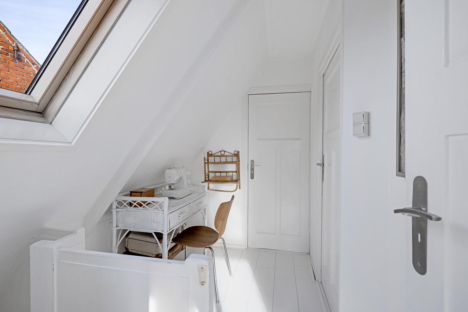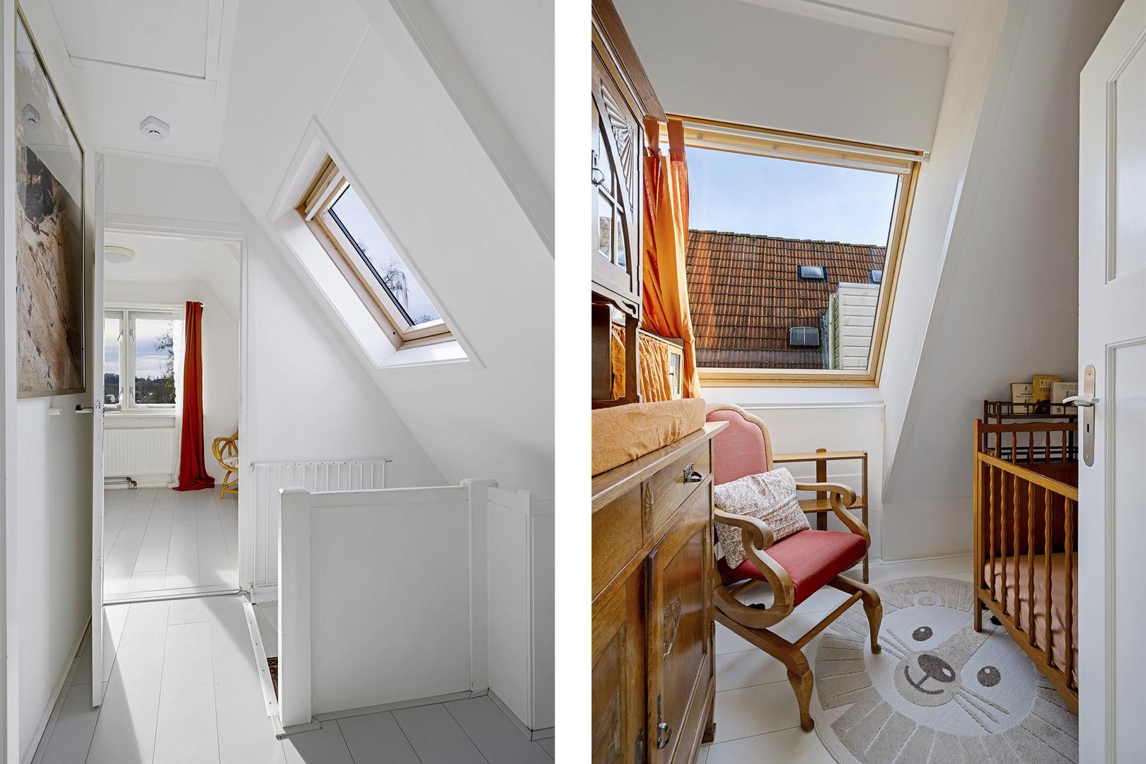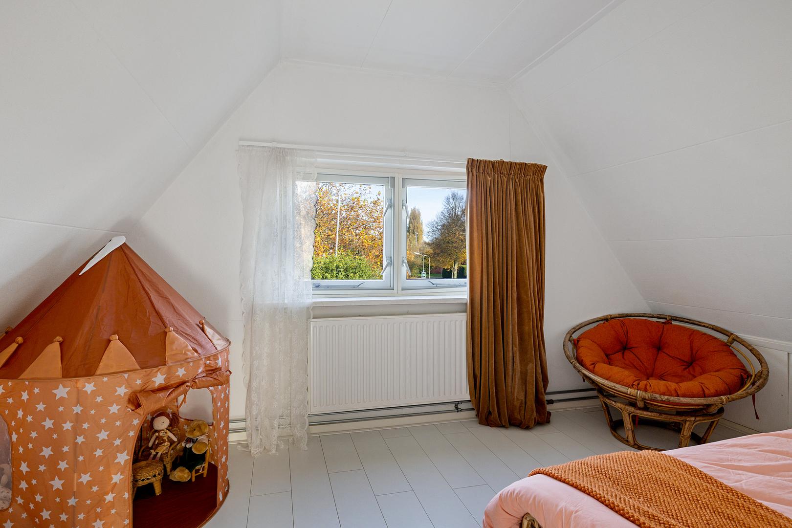 Op de eerste verdieping bevinden zich nog drie slaapkamers. Door schuine plafonds ogen de kamers knus maar licht, ideaal voor kinderen, logees of als rustige thuiswerkplekken. De overloop biedt extra opbergruimte en toegang tot de vliering.