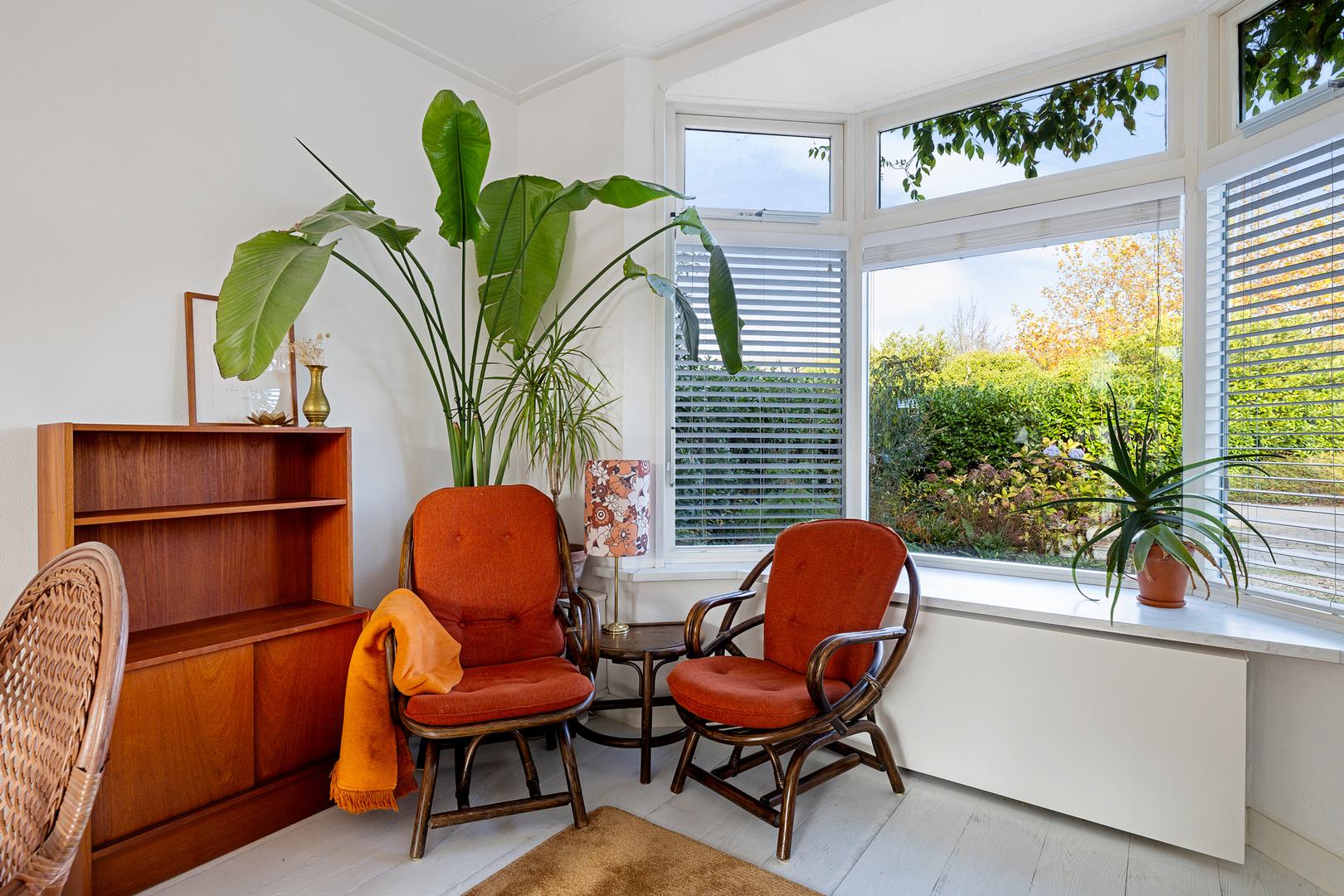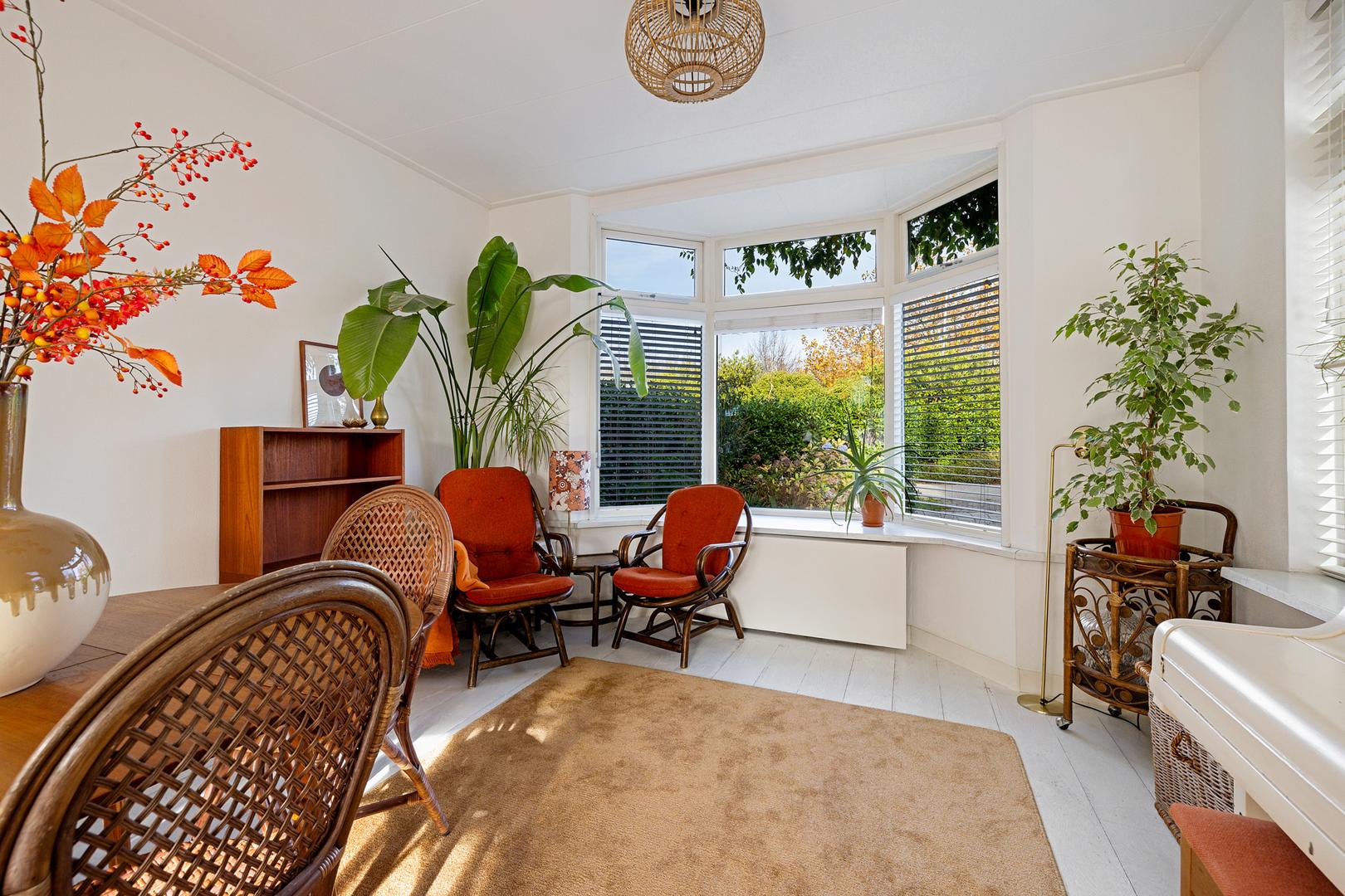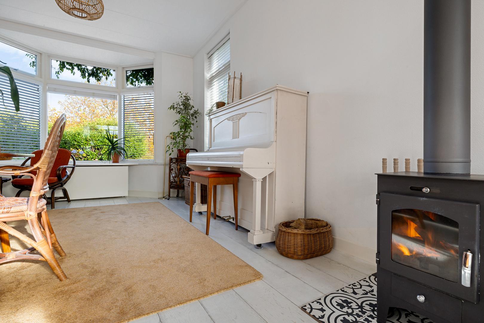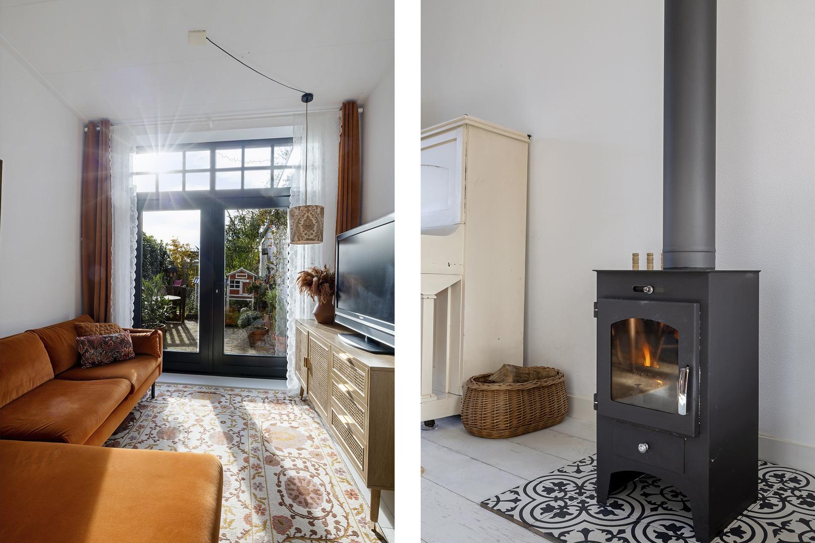 • Gezellige woonkamer met erker en houtkachel