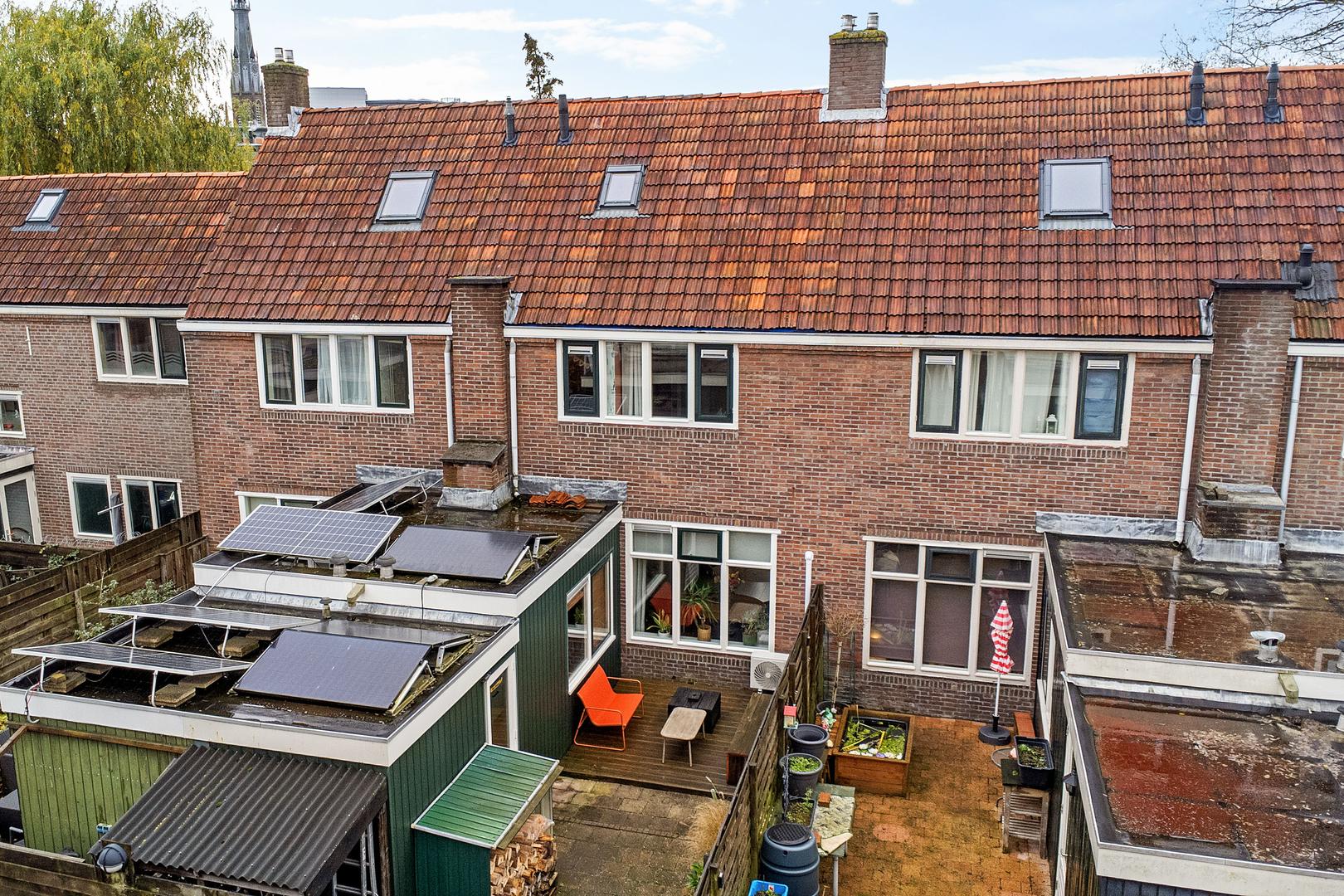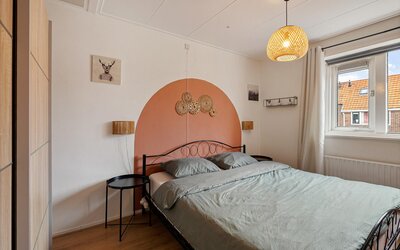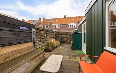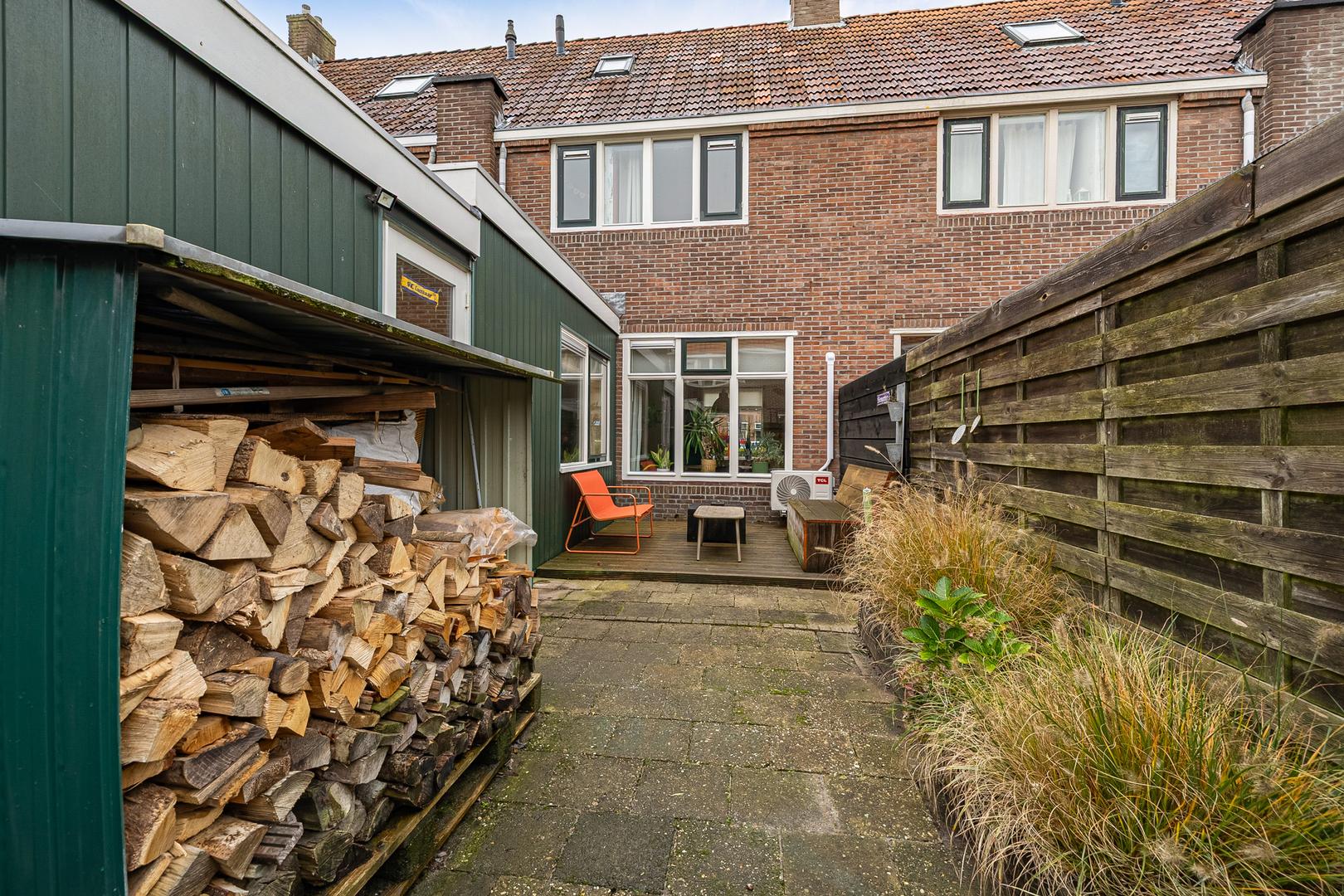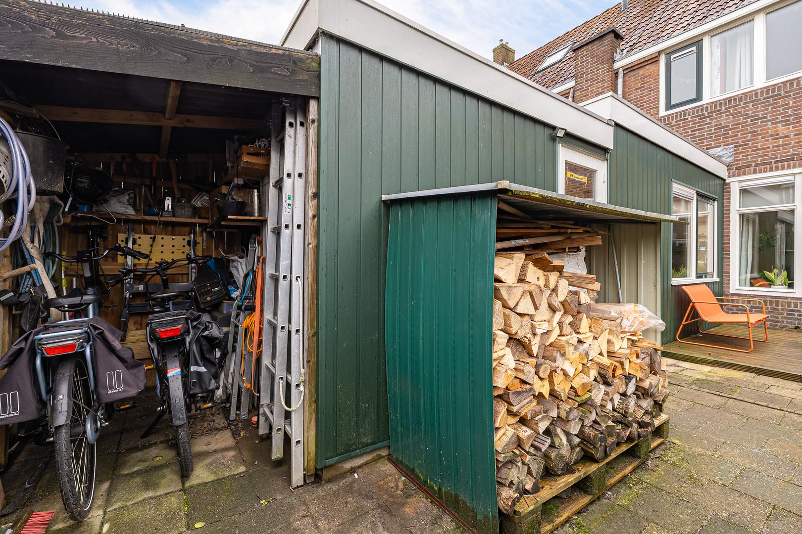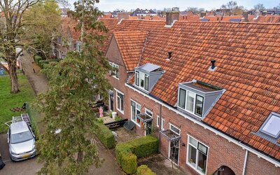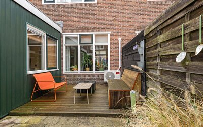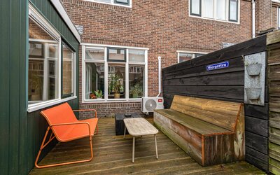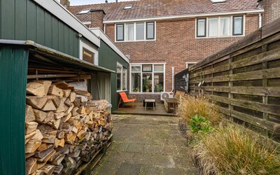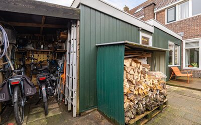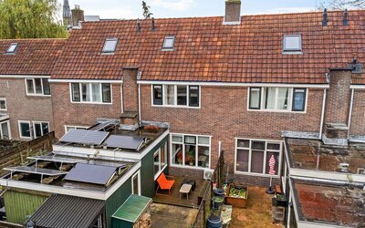 Ook buiten is het fijn wonen. De achtertuin is onderhoudsvriendelijk aangelegd en biedt genoeg plek voor een zitje en wat groen. Een groot pluspunt is de ruime berging/overkapping achterin de tuin. Perfect voor fietsen, gereedschap, houtopslag of alles wat je niet in huis wilt bewaren — echt een luxe bij een stadswoning. Daarnaast is de woning voorzien van 5 zonnepanelen (4 aan de achterzijde en 1 aan de voorzijde), wat bijdraagt aan een lager energieverbruik.