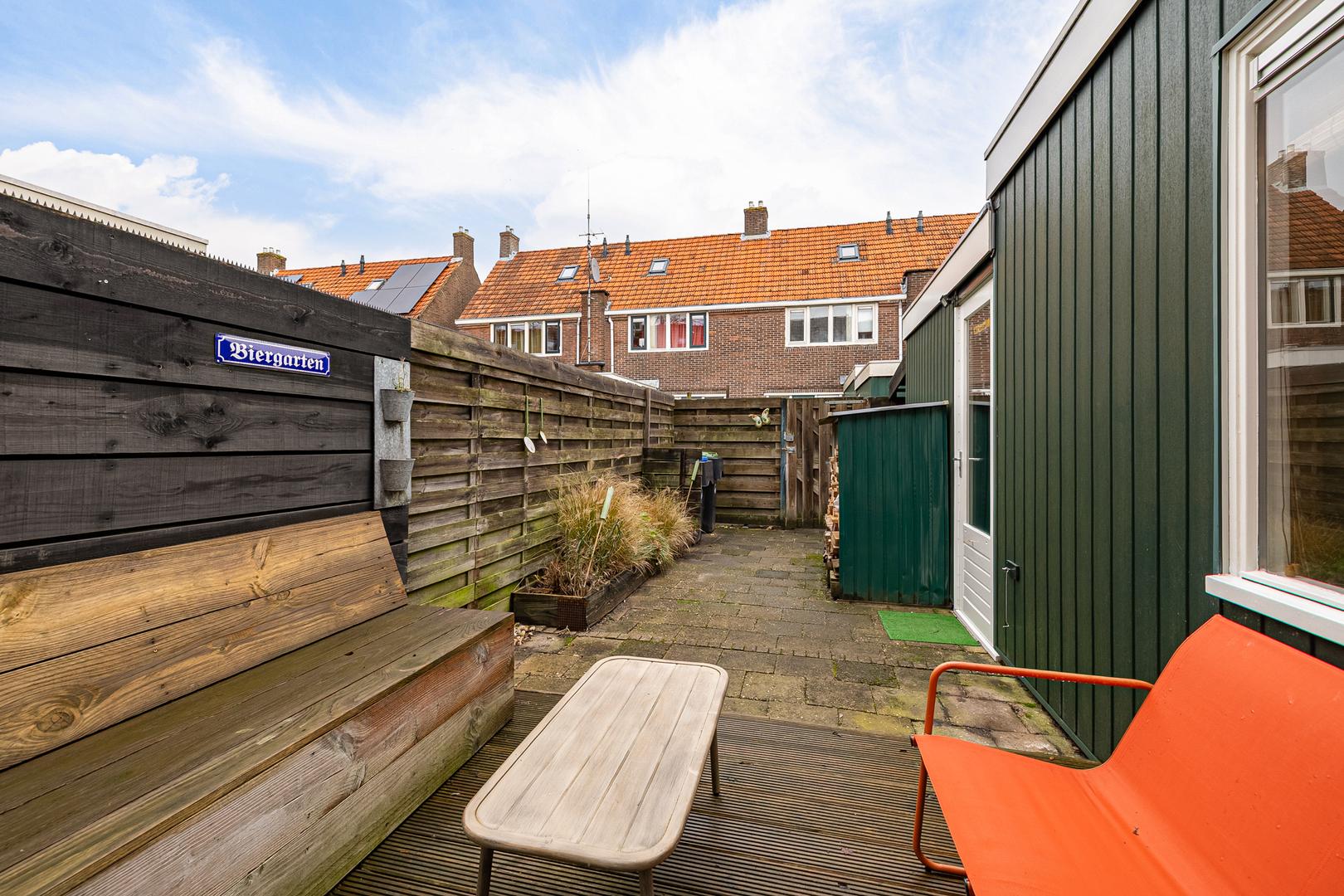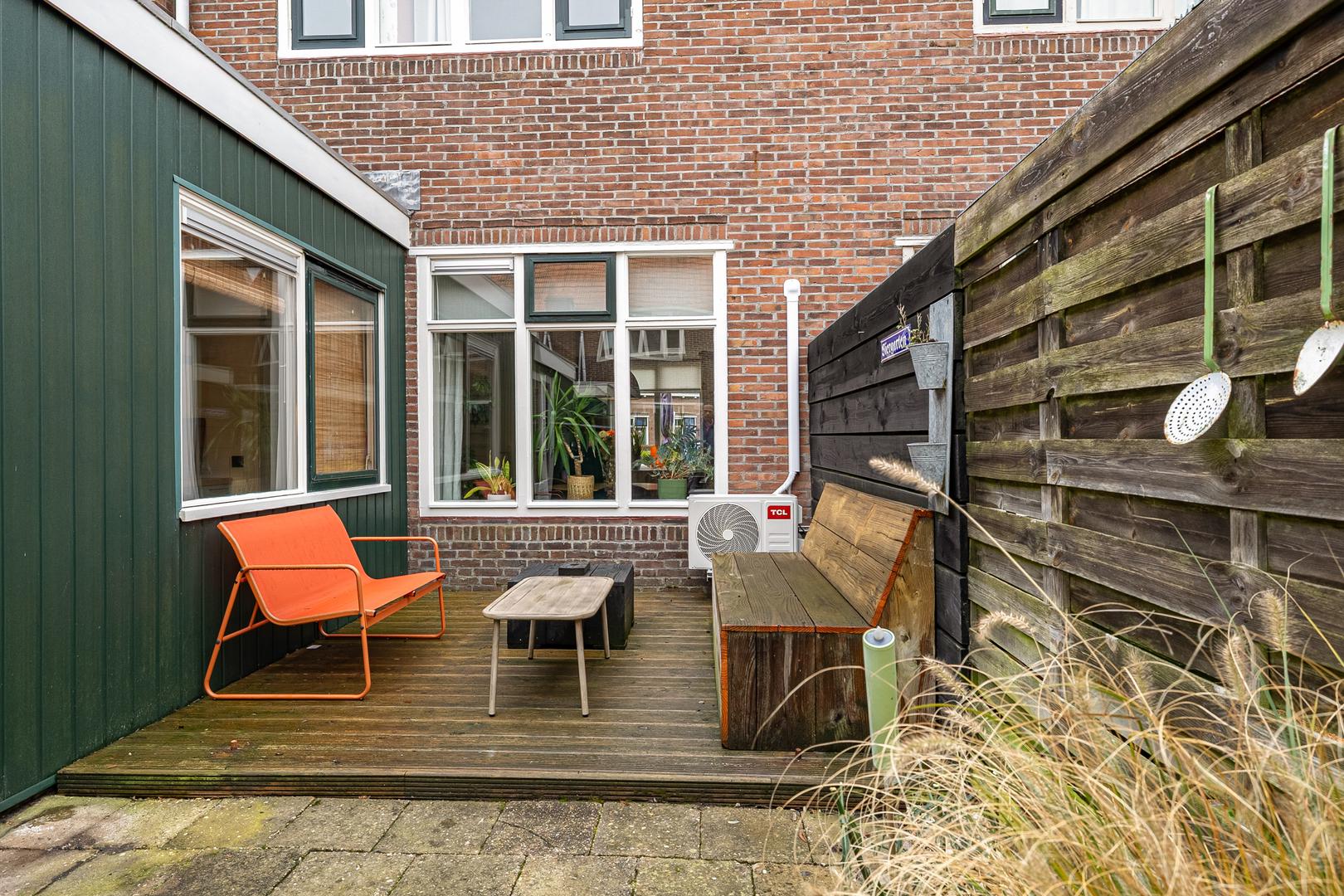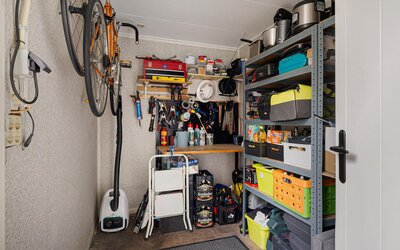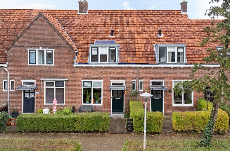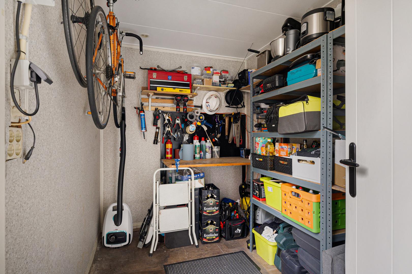 Ook buiten is het fijn wonen. De achtertuin is onderhoudsvriendelijk aangelegd en biedt genoeg plek voor een zitje en wat groen. Een groot pluspunt is de ruime berging/overkapping achterin de tuin. Perfect voor fietsen, gereedschap, houtopslag of alles wat je niet in huis wilt bewaren — echt een luxe bij een stadswoning. Daarnaast is de woning voorzien van 5 zonnepanelen (4 aan de achterzijde en 1 aan de voorzijde), wat bijdraagt aan een lager energieverbruik.