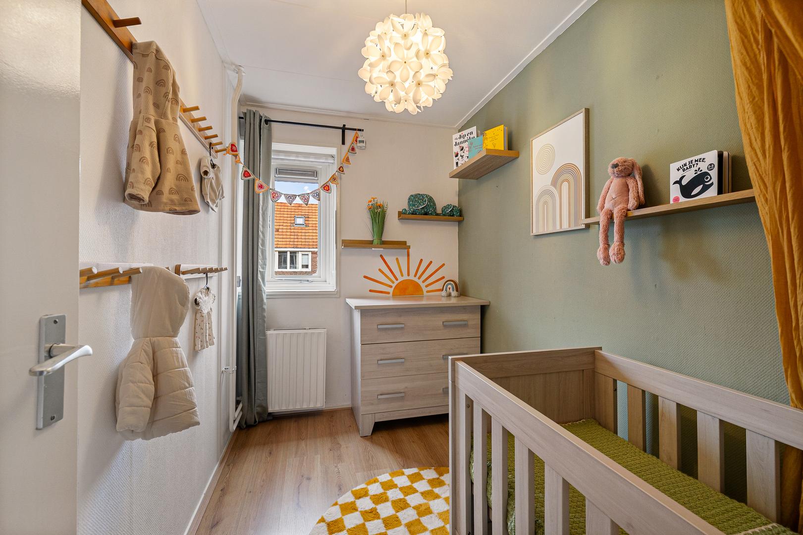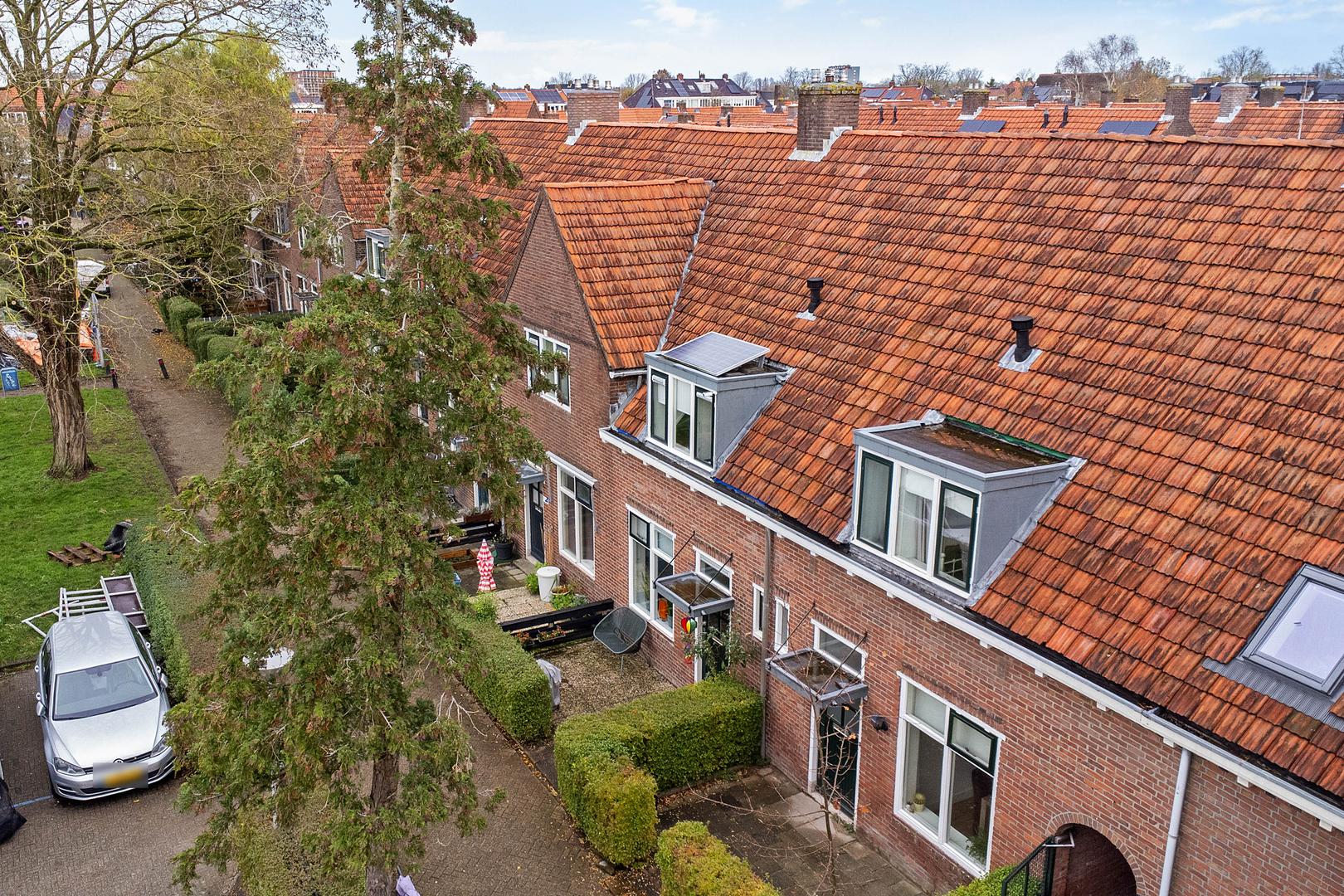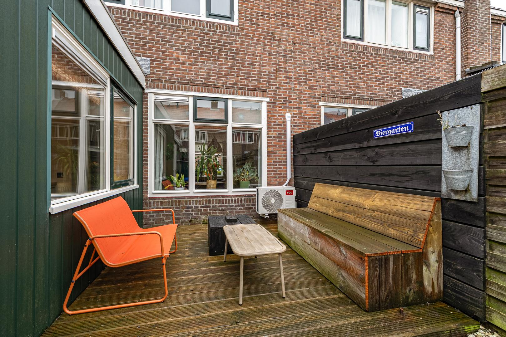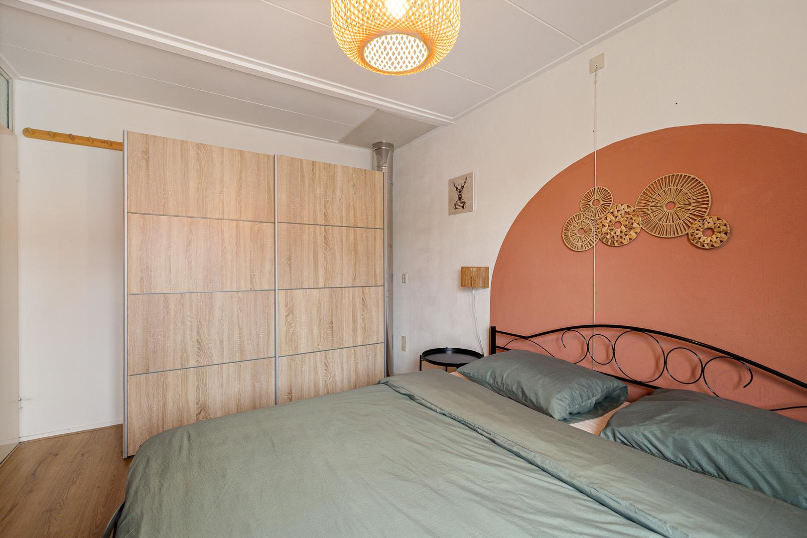 Ook buiten is het fijn wonen. De achtertuin is onderhoudsvriendelijk aangelegd en biedt genoeg plek voor een zitje en wat groen. Een groot pluspunt is de ruime berging/overkapping achterin de tuin. Perfect voor fietsen, gereedschap, houtopslag of alles wat je niet in huis wilt bewaren — echt een luxe bij een stadswoning. Daarnaast is de woning voorzien van 5 zonnepanelen (4 aan de achterzijde en 1 aan de voorzijde), wat bijdraagt aan een lager energieverbruik.
