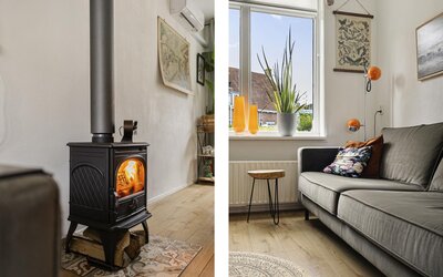 Je komt binnen via de entree met separaat toilet. Vanuit de hal stap je direct de woonkamer in: een lichte, gezellige leefruimte van ca. 25,7 m². Door de fijne maatvoering is er genoeg plek voor zowel een comfortabele zithoek als een eethoek. De houtkachel in de woonkamer is een echte sfeermaker en maakt dit tot een heerlijke plek om thuis te komen. Voor extra comfort is er in de woonkamer ook airconditioning aanwezig — ideaal tijdens warme dagen en prettig voor een aangenaam binnenklimaat.