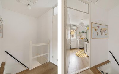 Op de eerste verdieping vind je drie slaapkamers van ca. 11,2 m², 6,4 m² en 5,1 m². Of je nu behoefte hebt aan een hoofdslaapkamer, kinderkamer, logeerkamer of een fijne werkplek: hier kan het allemaal. De kamers zijn licht en verzorgd.