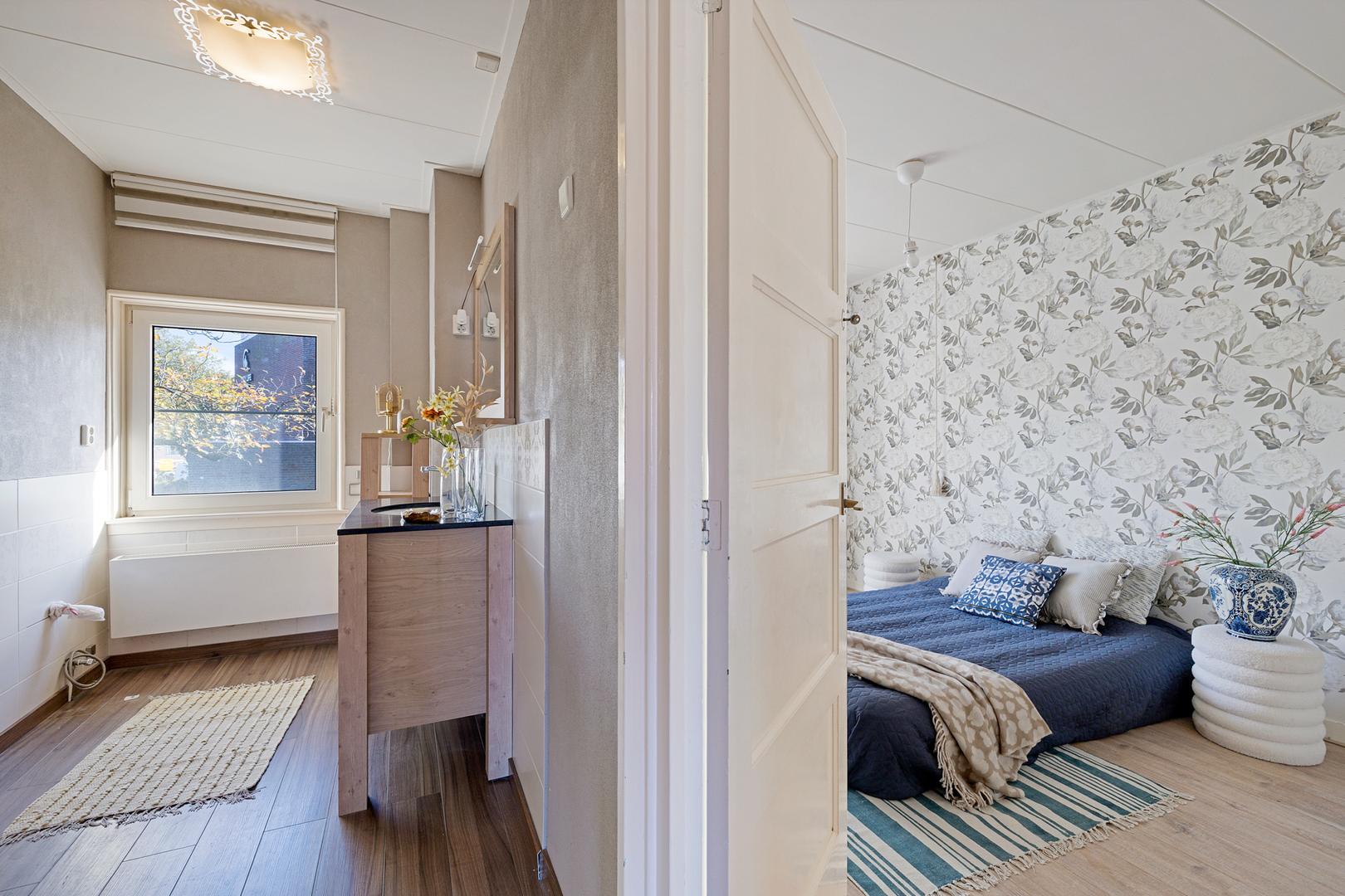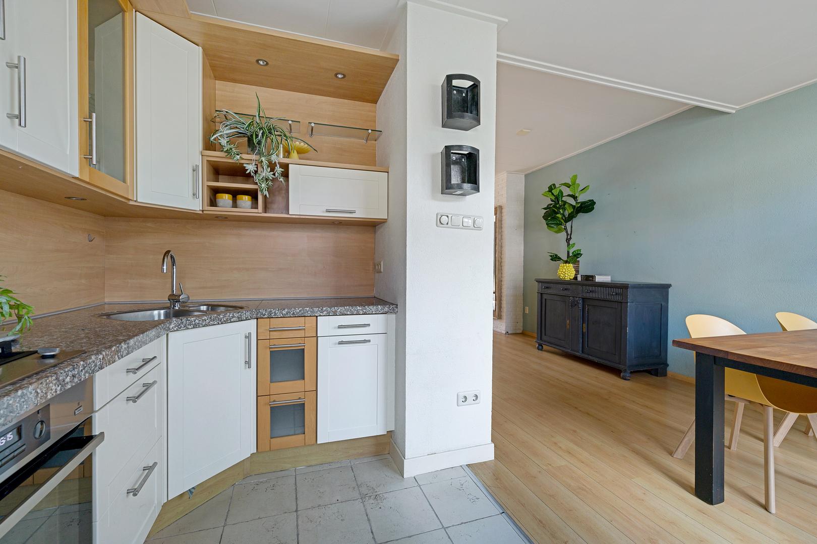 De woonkamer is warm en uitnodigend, met ruimte voor een gezellige zithoek waar lange avonden met familie of vrienden als vanzelf ontstaan. Dankzij de gunstige lichtinval oogt de kamer fris en levendig, zonder dat het zijn knusse karakter verliest. De keuken sluit mooi aan op het eetgedeelte, een fijne plek voor wie houdt van koken en samen zijn.