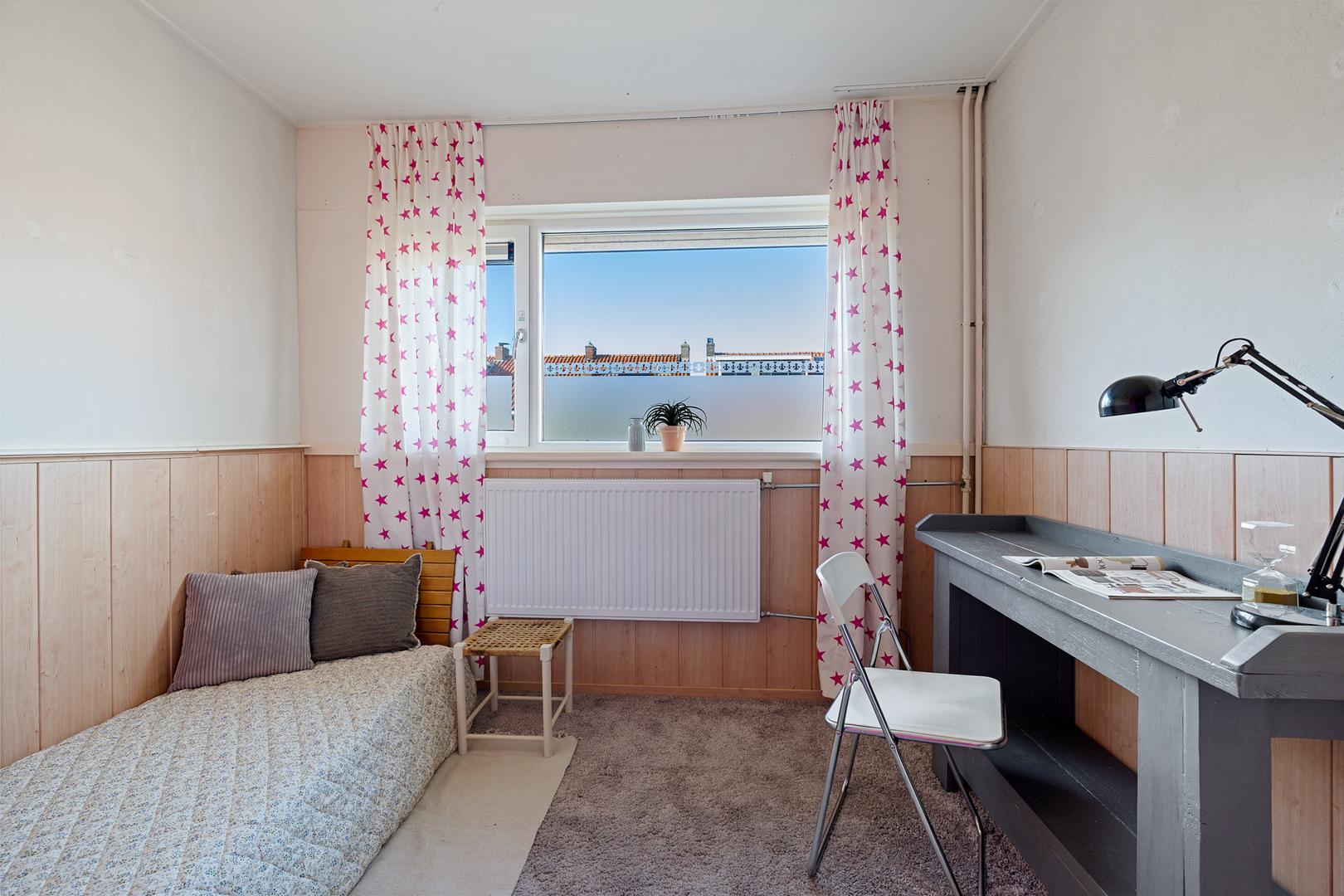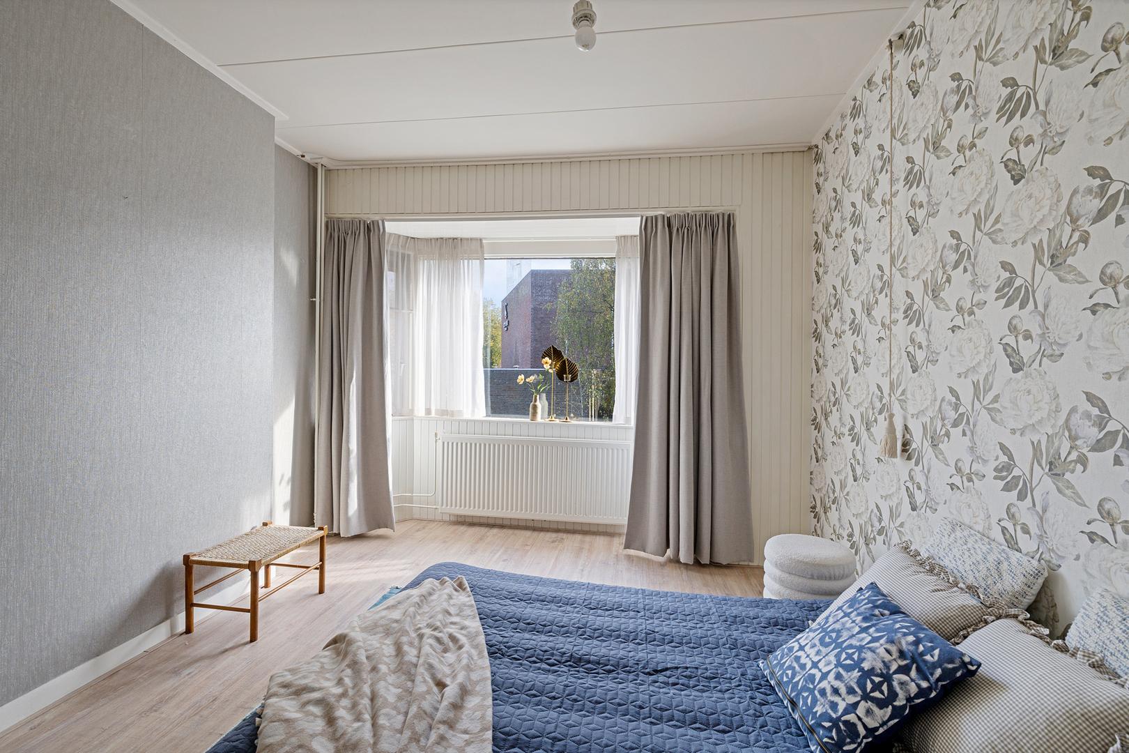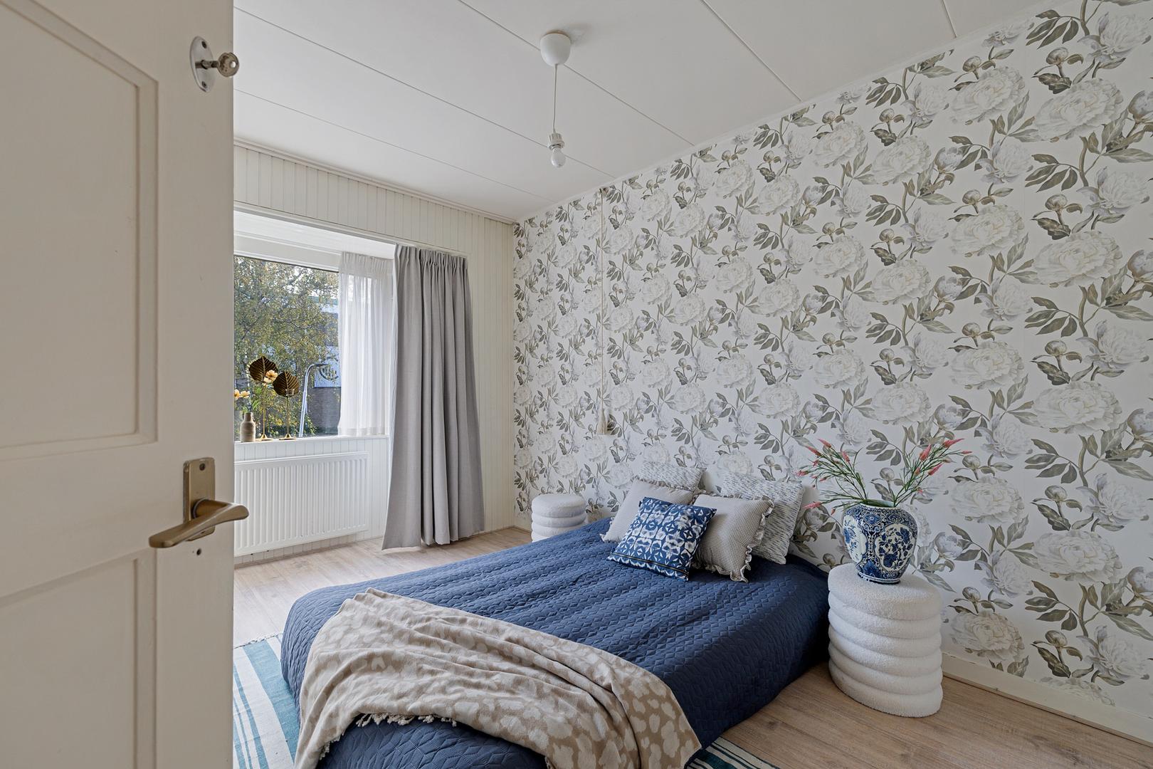 De tweede verdieping biedt een derde slaapkamer (ca. 11,4 m²), sfeervol door de schuine kap en voorzien van extra bergruimte achter de knieschotten. De overloop (ca. 8,8 m²) heeft eveneens bergruimte en is groot genoeg voor bijvoorbeeld een werkhoek of hobbyruimte.