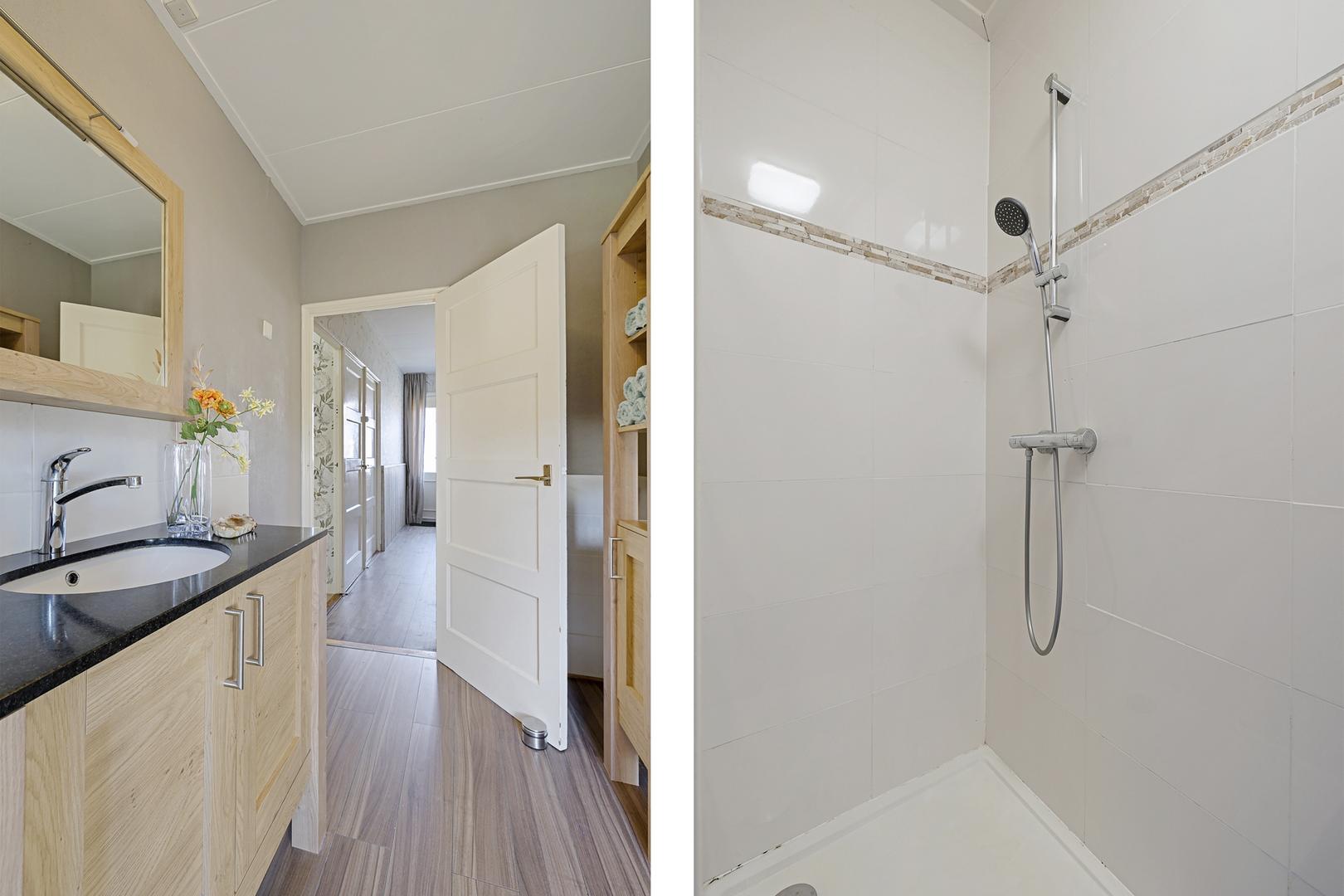 Op de eerste verdieping vind je twee slaapkamers van respectievelijk ca. 13,2 m² en 9,8 m², beide met vaste kasten en veel daglicht. Daarnaast zijn er een badkamer (ca. 5,1 m²) met wastafel, en een aparte doucheruimte aanwezig. De overloop (ca. 6,7 m²) zorgt voor een ruime en open verbinding tussen de vertrekken.