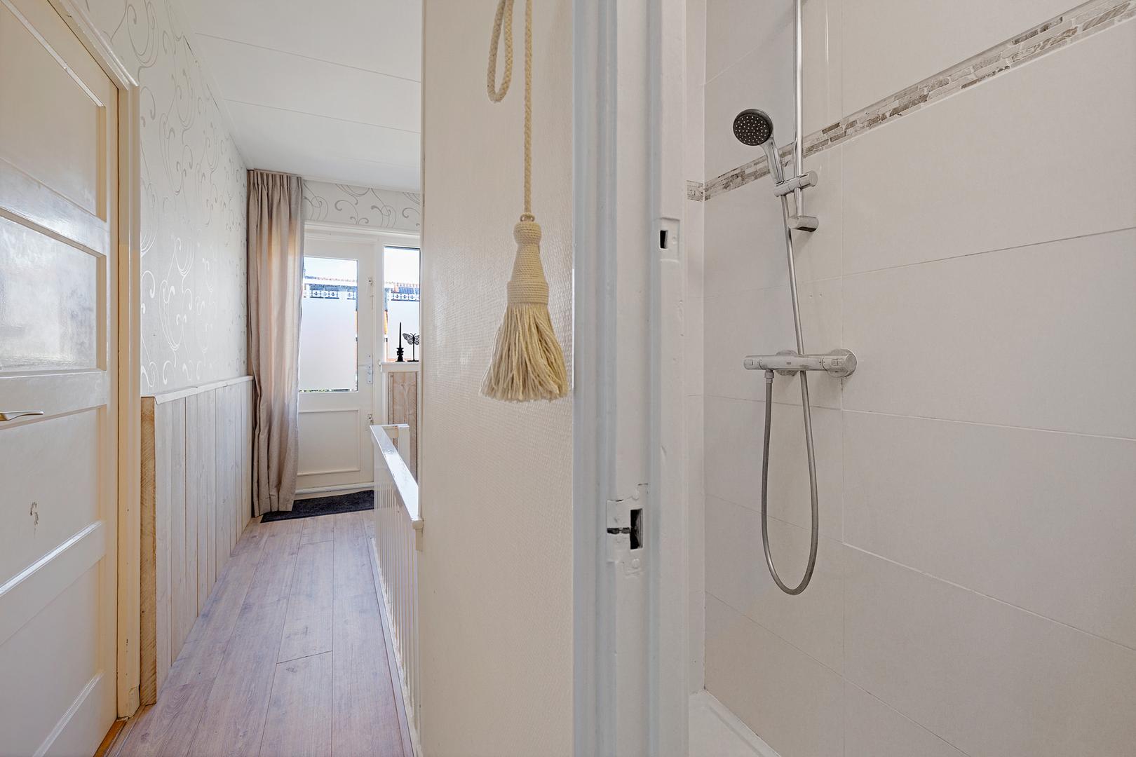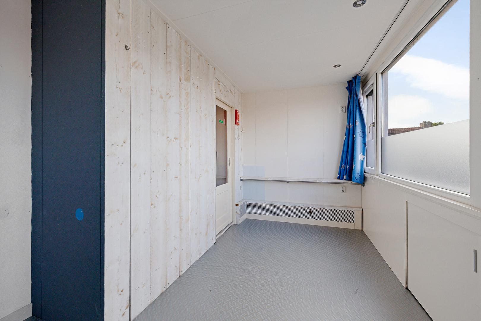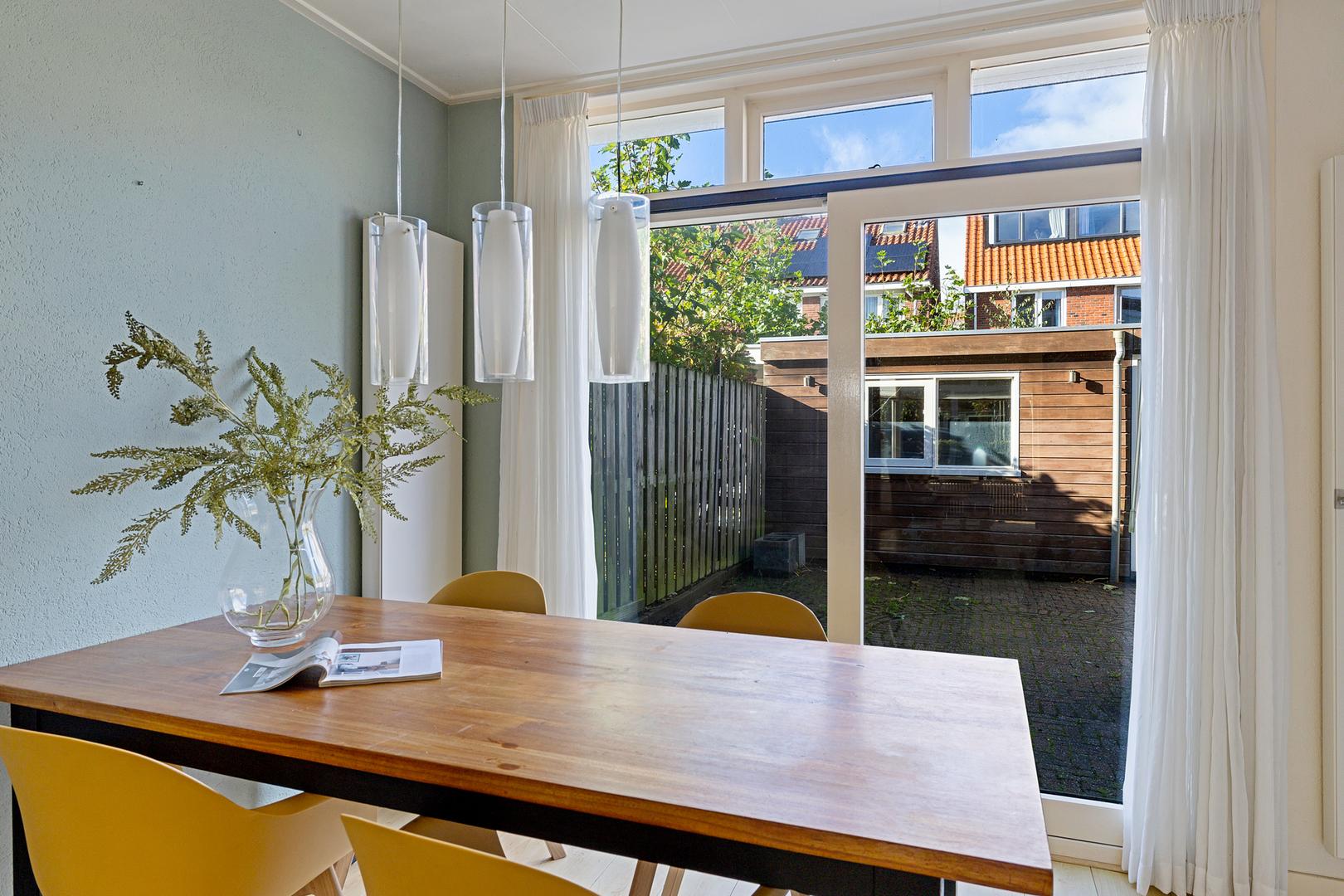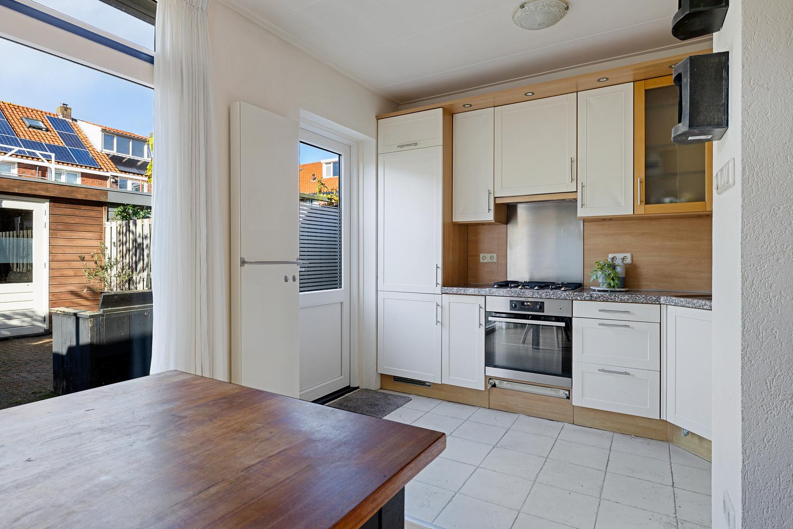 Achter de woning ligt een knusse achtertuin met een grote berging, ideaal voor fietsen, tuinspullen of extra opslag. Op zonnige dagen kun je hier heerlijk buiten zitten; zet er een tafeltje en wat planten neer en je hebt je eigen gezellige plekje midden in de stad.