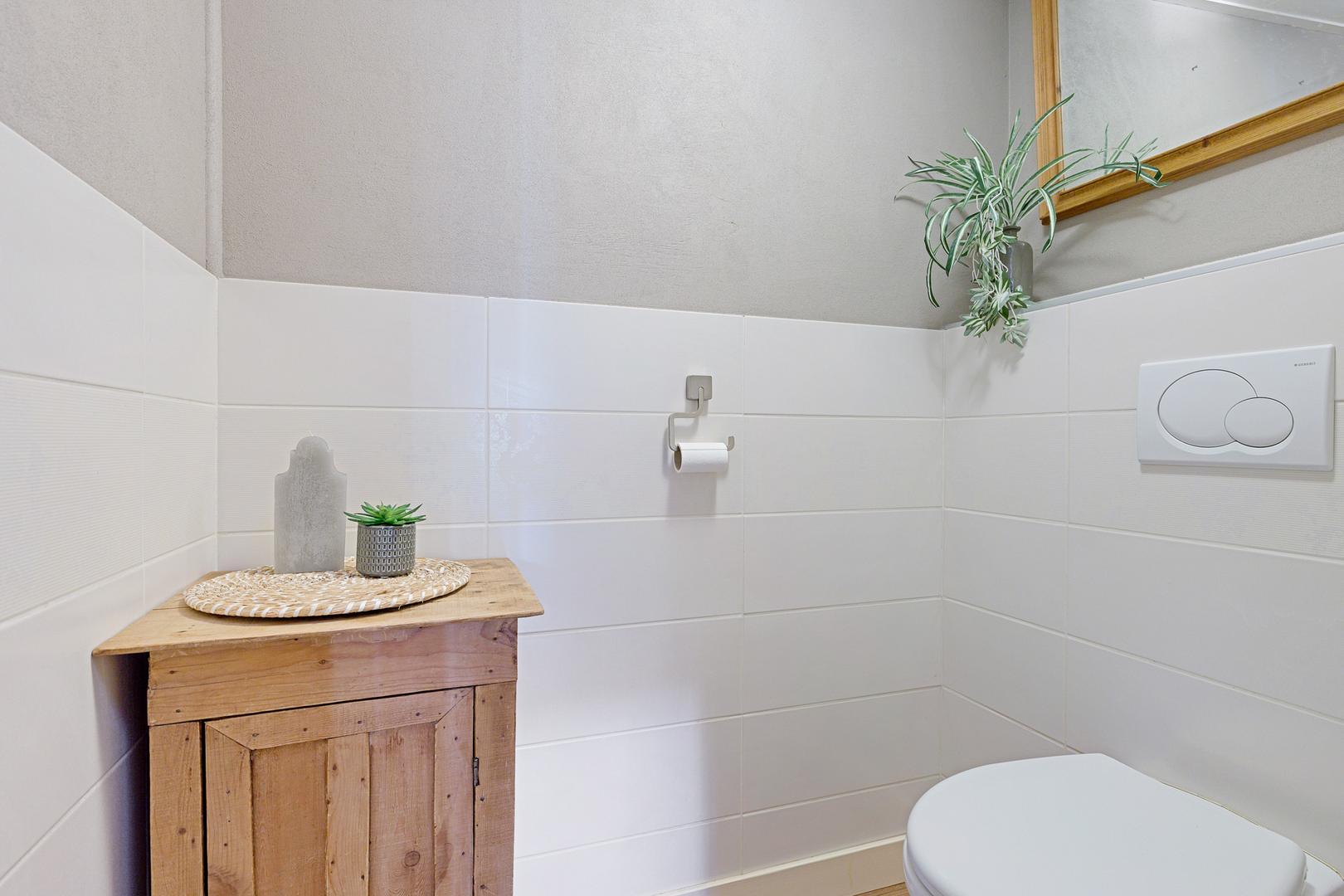 Via de hal zijn het toilet en een handige trapkast bereikbaar, perfect voor extra opbergruimte.