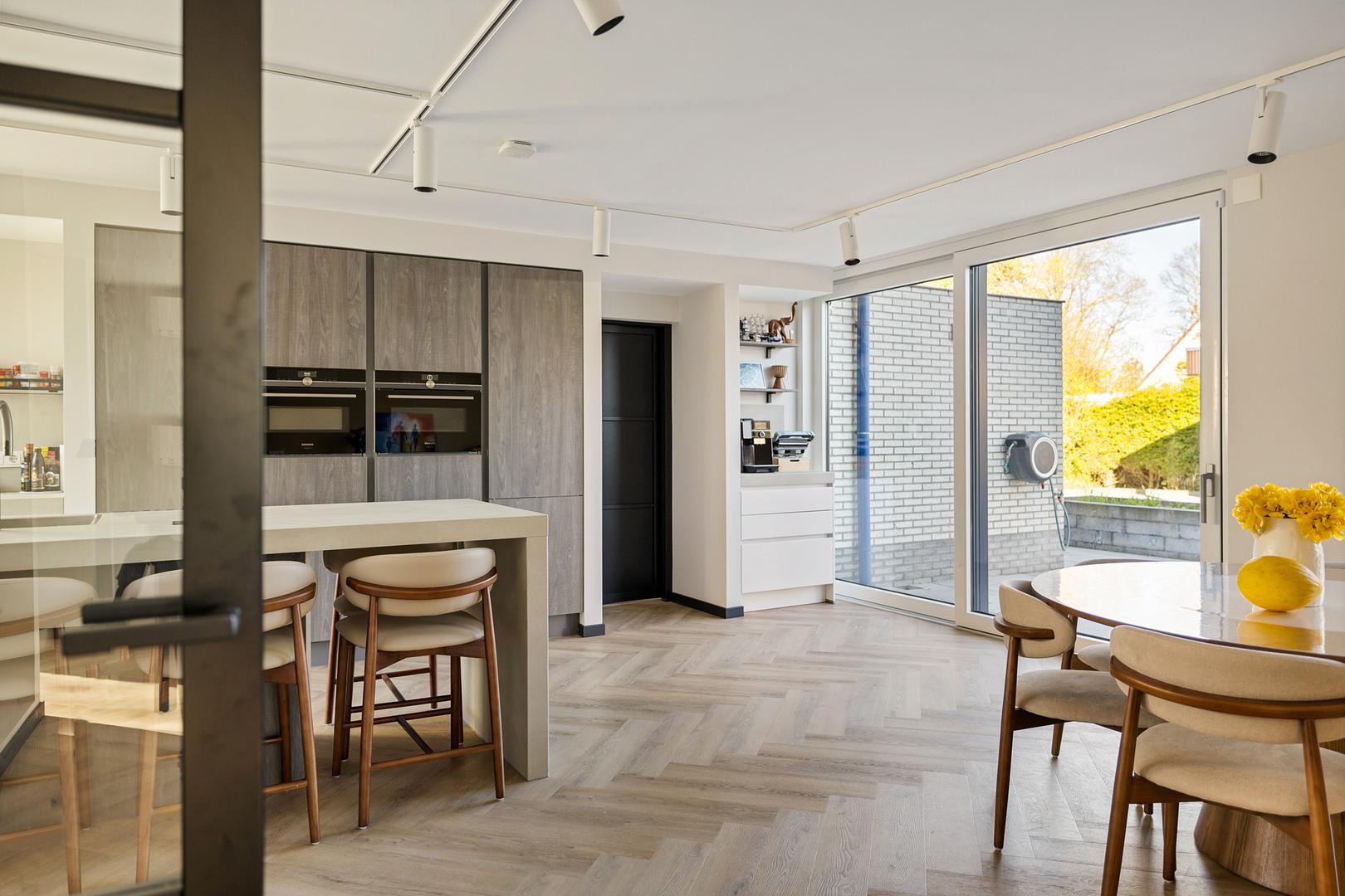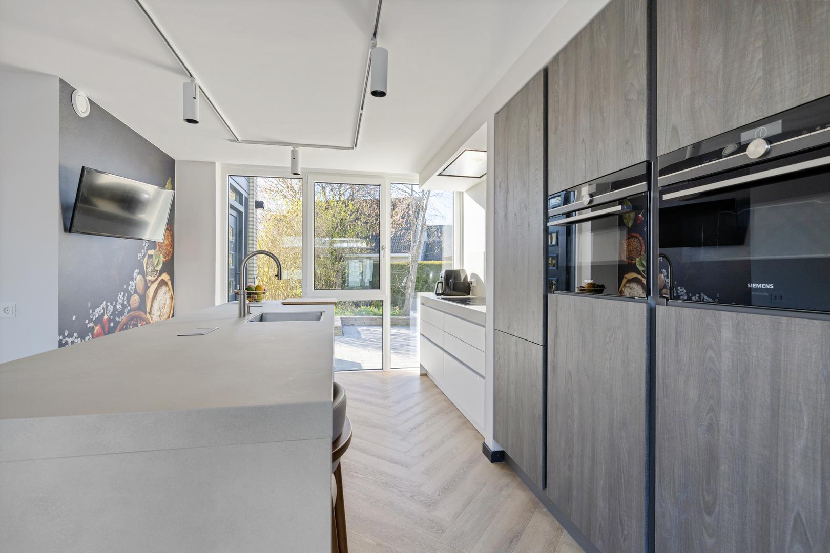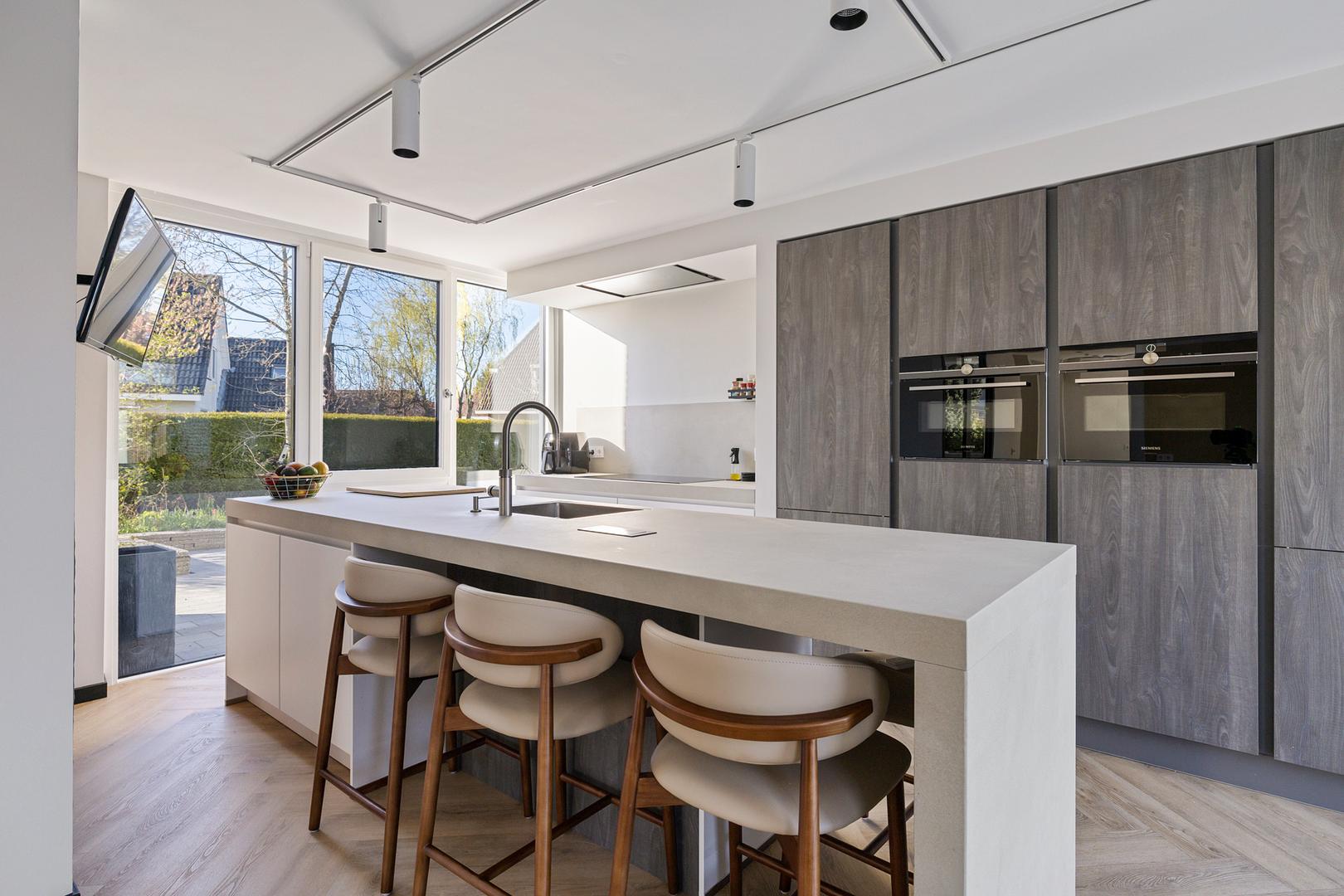 Smart Kitchen: De splinternieuwe keuken is uitgerust met de exclusieve Siemens StudioLine iQ700-serie (stoomoven, combi-magnetron, aparte koeling en vriezer) en een Quooker voor kokend, gekoeld en bruisend water. Alles is via een app bedienbaar en geïntegreerd in de huisdomotica.