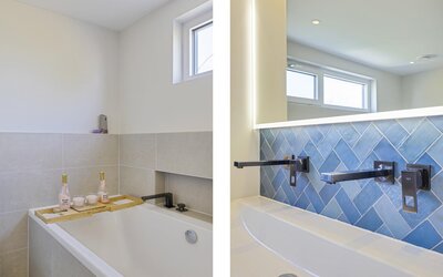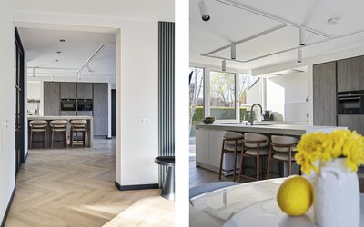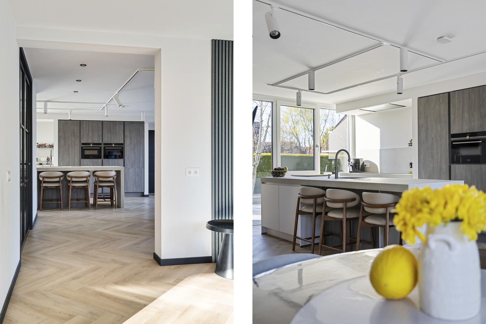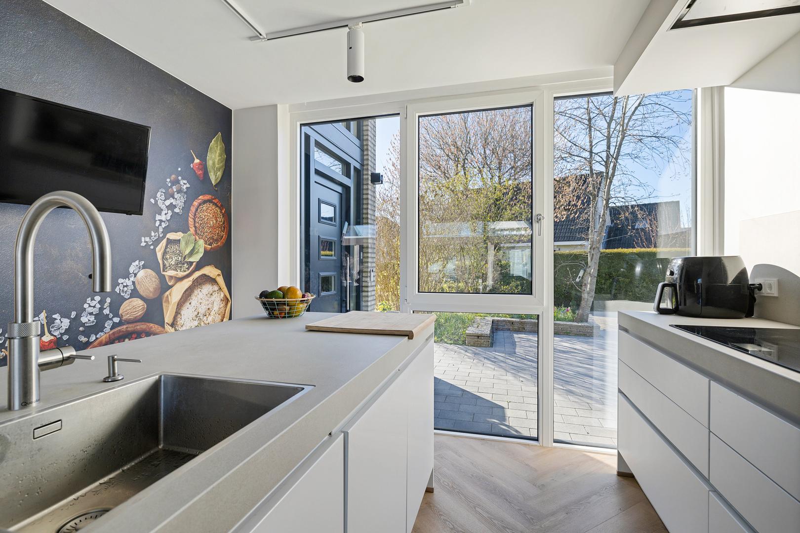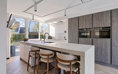Smart Kitchen: De splinternieuwe keuken is uitgerust met de exclusieve Siemens StudioLine iQ700-serie (stoomoven, combi-magnetron, aparte koeling en vriezer) en een Quooker voor kokend, gekoeld en bruisend water. Alles is via een app bedienbaar en geïntegreerd in de huisdomotica.