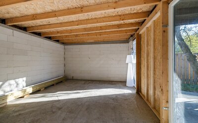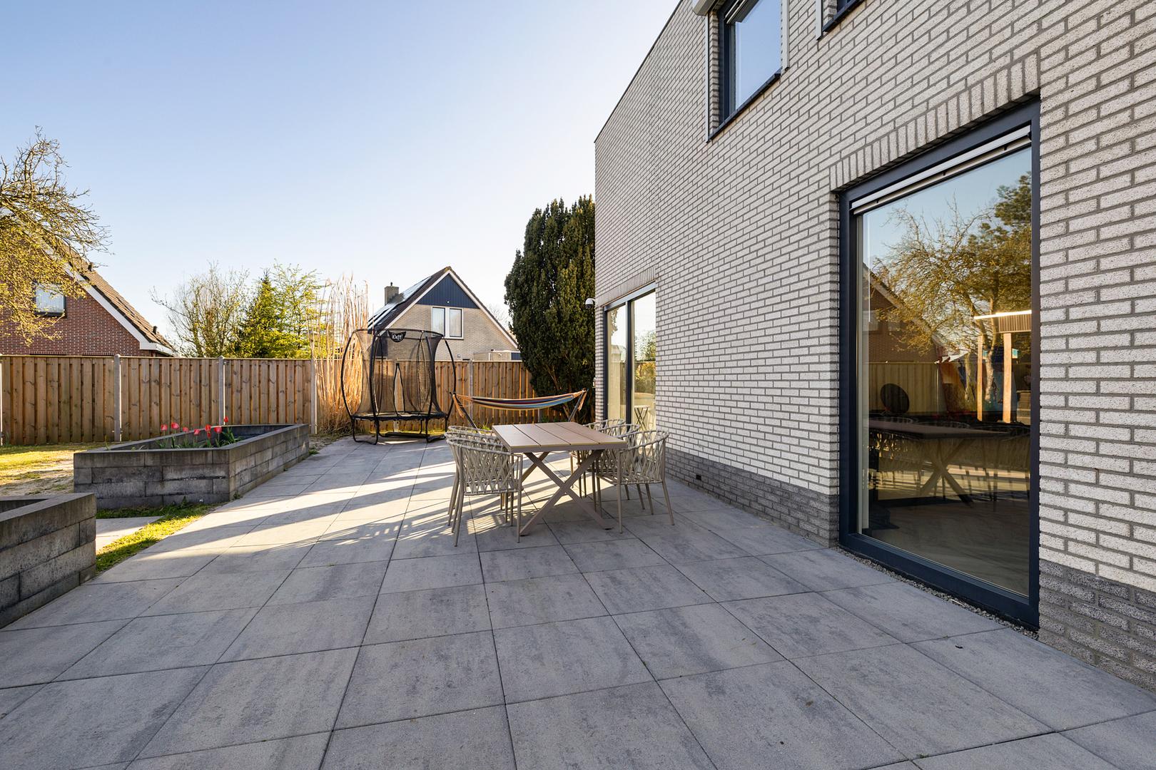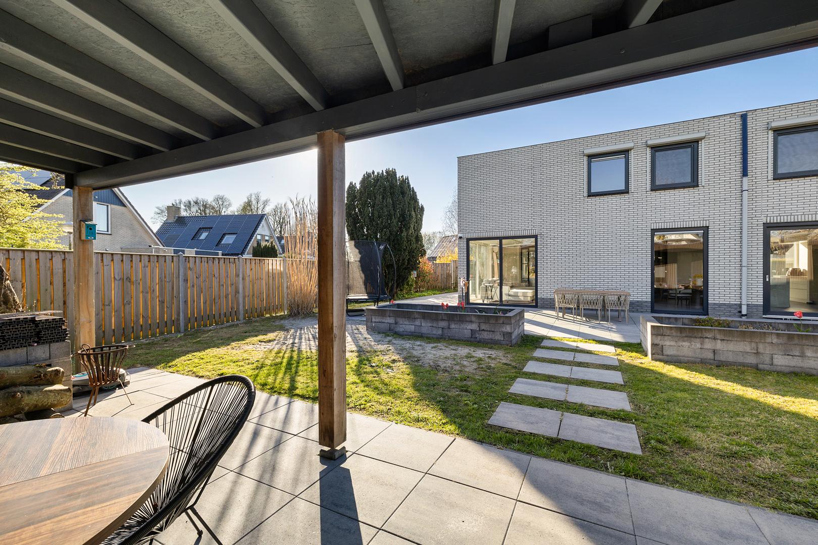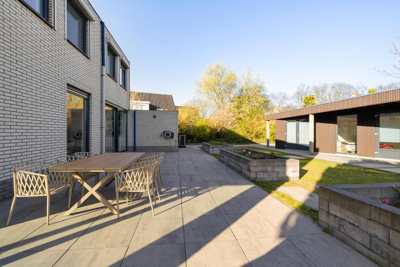 Tuinhuis Plus: De achtertuin beschikt over een groot, multifunctioneel tuinhuis voorzien van een eigen meterkast, water, elektra en riolering. Ideaal als kantoor, gym of voorbereiding op een thuisaccu.