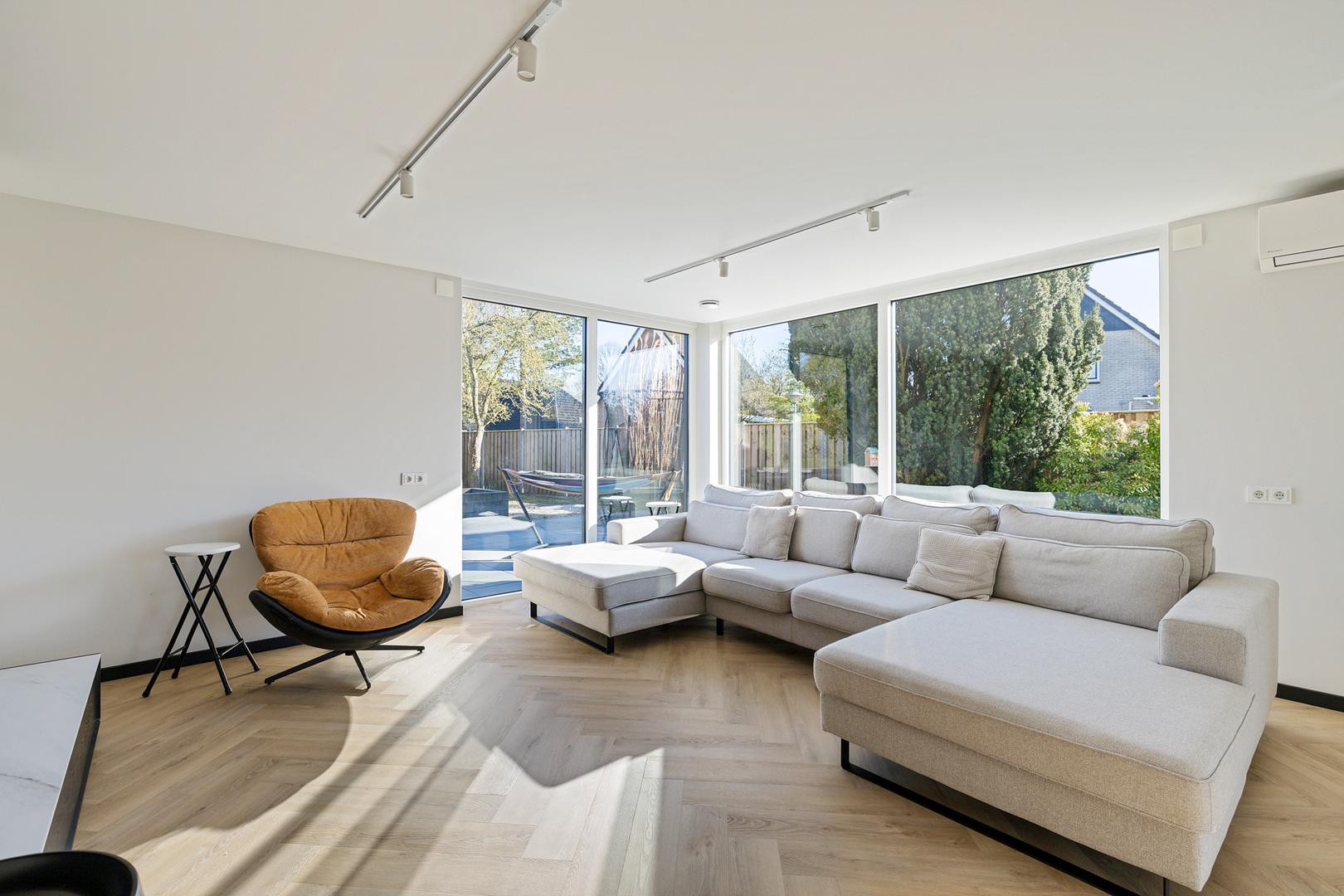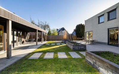 De woning wordt omringd door een ruim opgezette en fraai aangelegde tuin, waar rust en privacy centraal staan. Dankzij de vrije ligging en de grote raampartijen geniet u hier de hele dag van een prachtige lichtinval. Het moderne karakter, in combinatie met de architectonische bouw, zorgt voor een bijzonder ruimtelijk gevoel en een hoog wooncomfort.