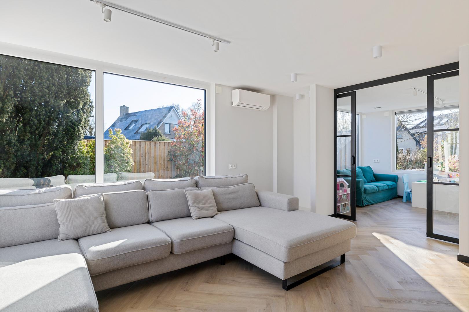 Geen wand of leiding is overgeslagen. Alle muren zijn strak gestuukt, het kozijnwerk is volledig vernieuwd (inclusief horren) en het dak is uitstekend geïsoleerd met 17 cm glaswol. De nieuwe badkamer met ligbad en regendouche maakt het luxegevoel compleet.