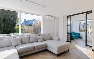 Klimaatbeheersing: Zowel de begane grond als de volledige tweede verdieping beschikken over vloerverwarming. In elke kamer is bovendien de infrastructuur voor een WTW-systeem (ventilatie met warmteterugwinning) reeds aanwezig. Bij de wens om gebruik te maken van deze installatie is het plaatsen van de unit voldoende om het systeem direct operationeel te maken.
